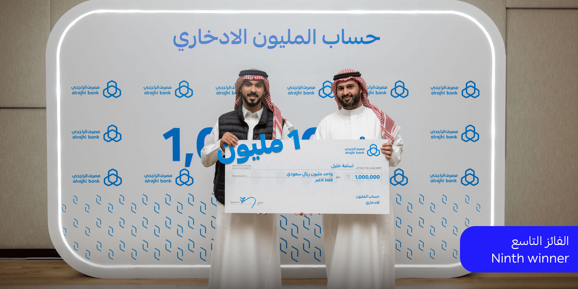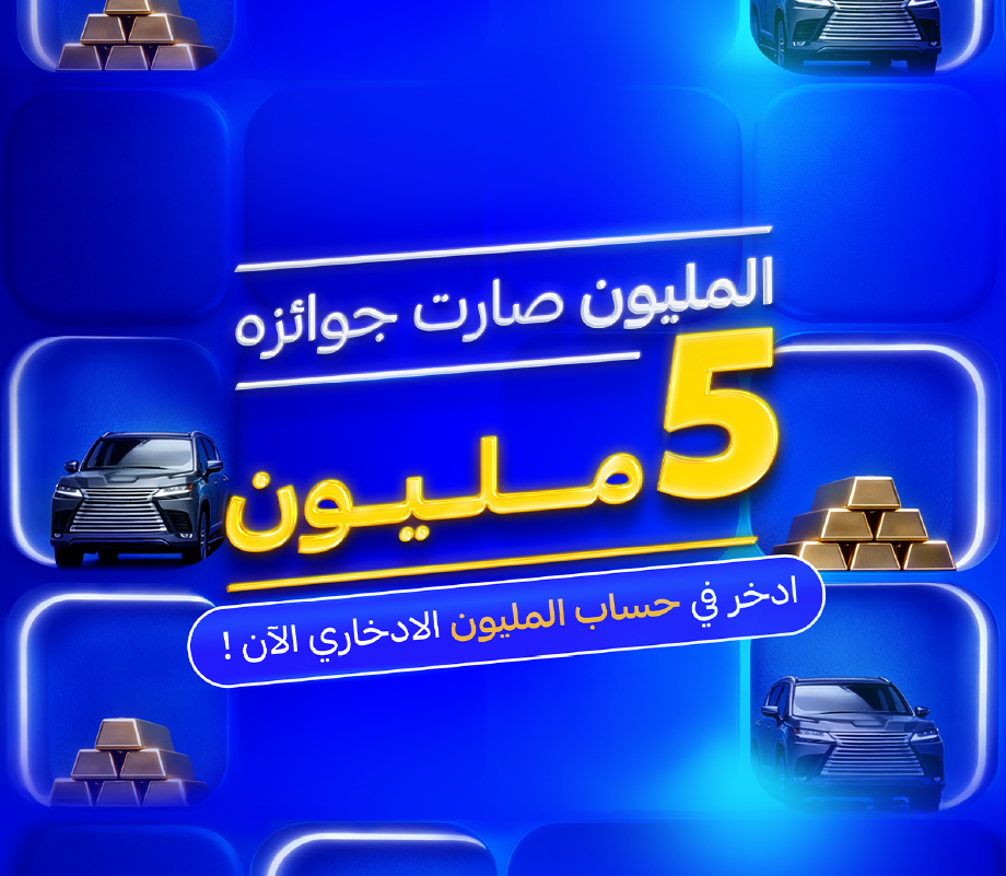 حساب المليون هو حساب ادخاري مصمم ليحوّل الادخار إلى فرصة حقيقية للربح. بمجرد بدءك بالادخار، تدخل تلقائيًا في سحوبات منتظمة على جوائز قيّمة، تبدأ بجوائز أسبوعية وتنتهي بجائزة كبرى كل 8 أسابيع بقيمة مليون ريال