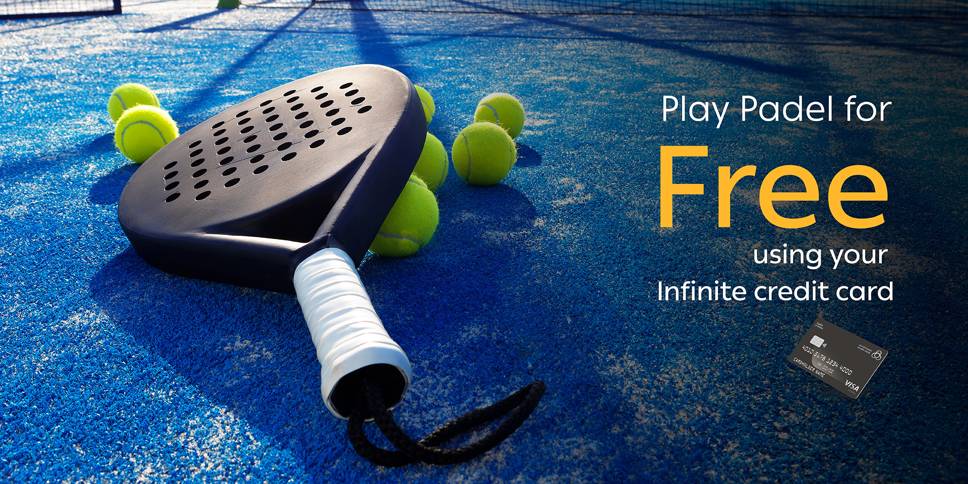 Enjoy complimentary Padel games at the finest clubs and courts with alrajhi bank black card and infinite credit cards.