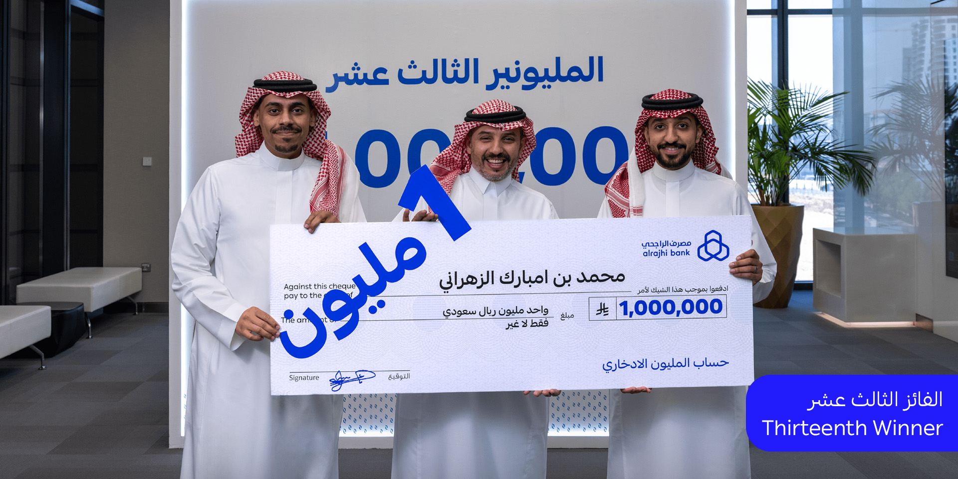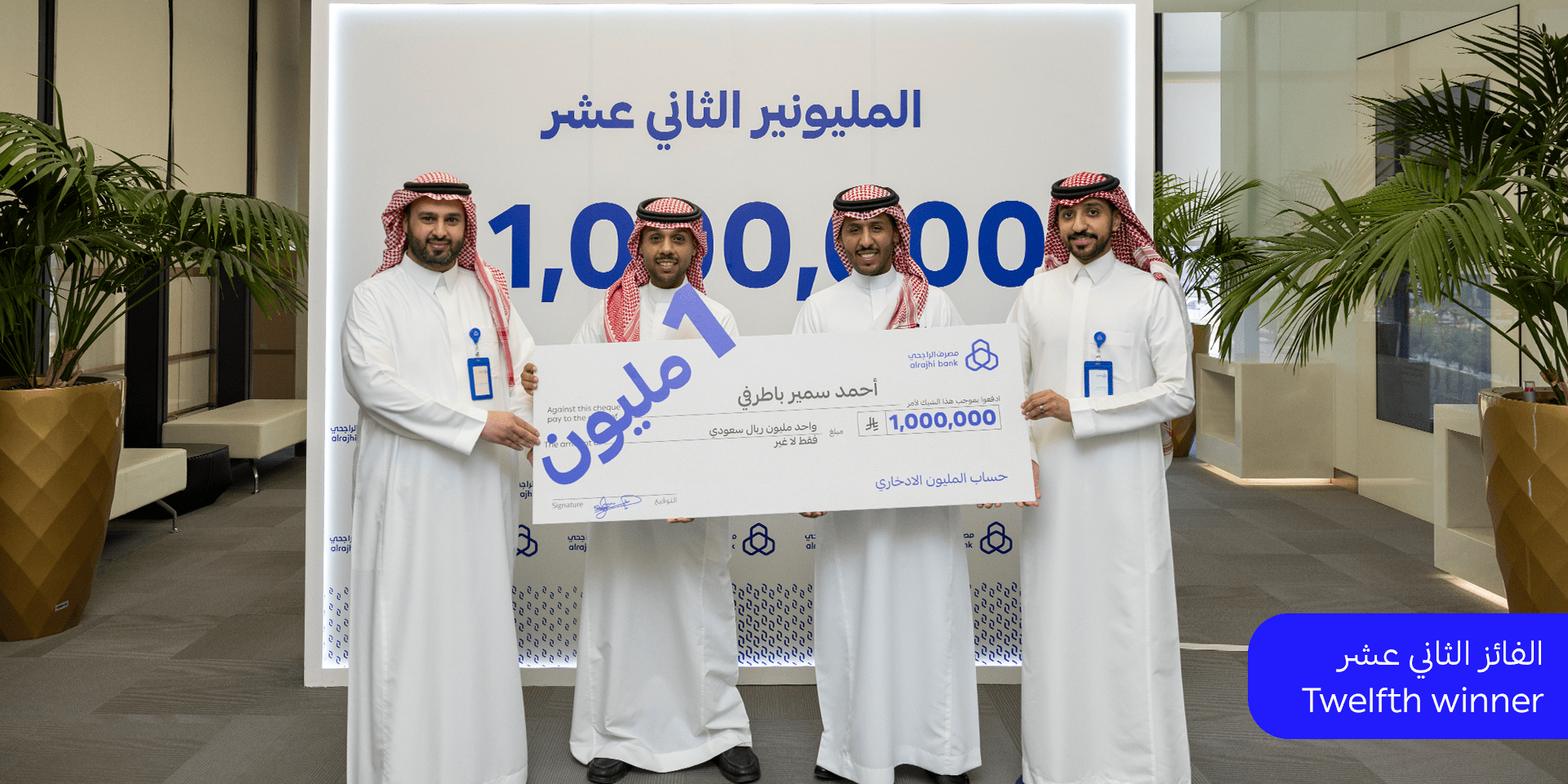حساب المليون هو حساب ادخاري مصمم ليحوّل الادخار إلى فرصة حقيقية للربح. بمجرد بدءك بالادخار، تدخل تلقائيًا في سحوبات منتظمة على جوائز قيّمة، تبدأ بجوائز أسبوعية وتنتهي بجائزة كبرى كل 8 أسابيع بقيمة مليون ريال