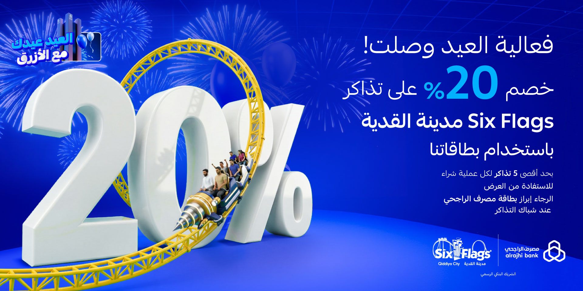 • تطبق شروط وأحكام مصرف الراجحي و Six Flagsمدينة القدية