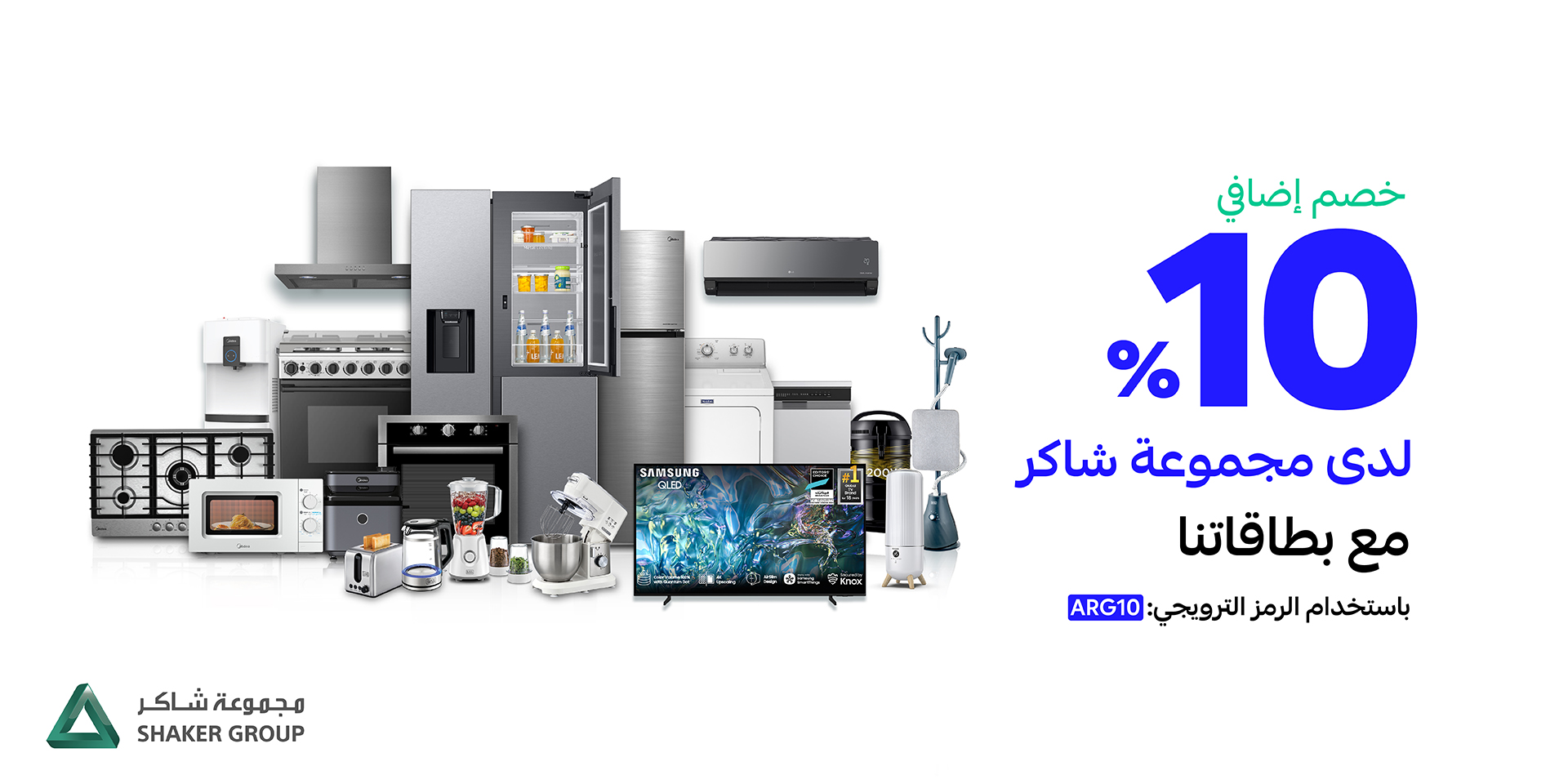• احصل على خصم إضافي 10% عبر الموقع الإلكتروني بإستخدام الرمز الترويجي ARG10 و معارض مجموعة شاكر.