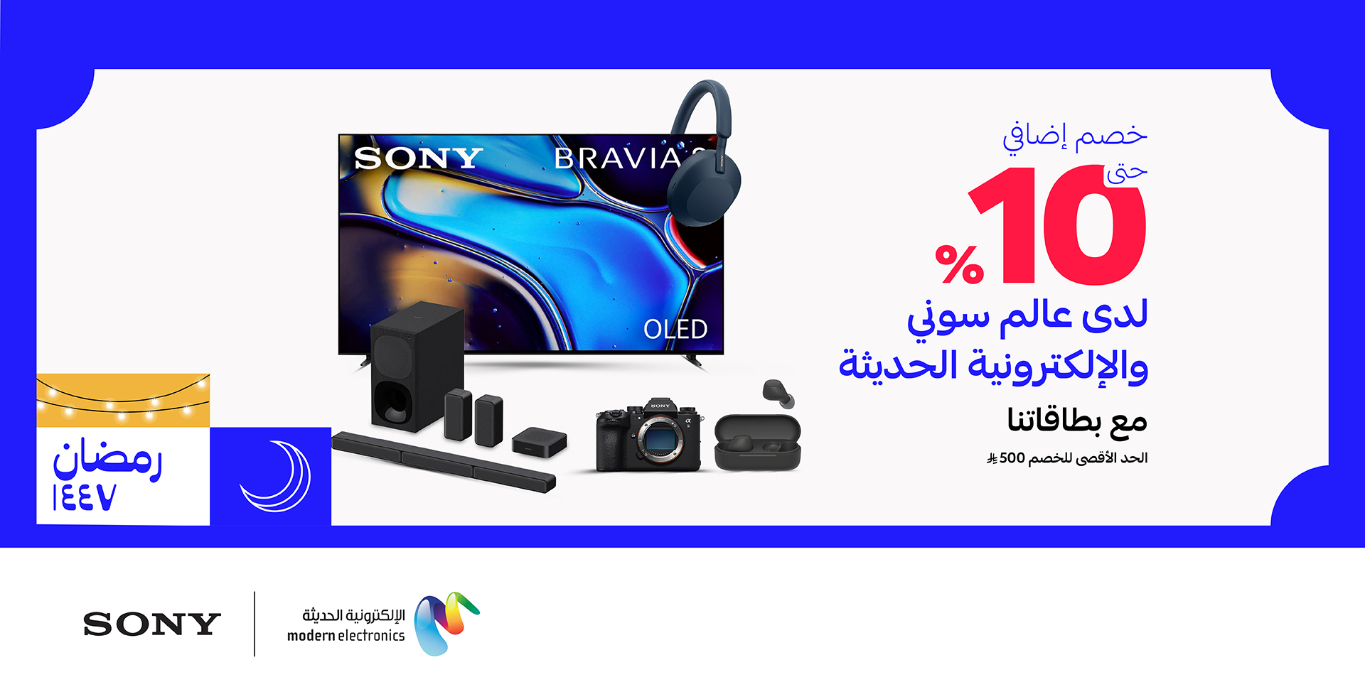 - احصل على خصم إضافي % 10 عبر الموقع الإلكتروني وفروع عالم سوني و الإلكترونية الحديثة