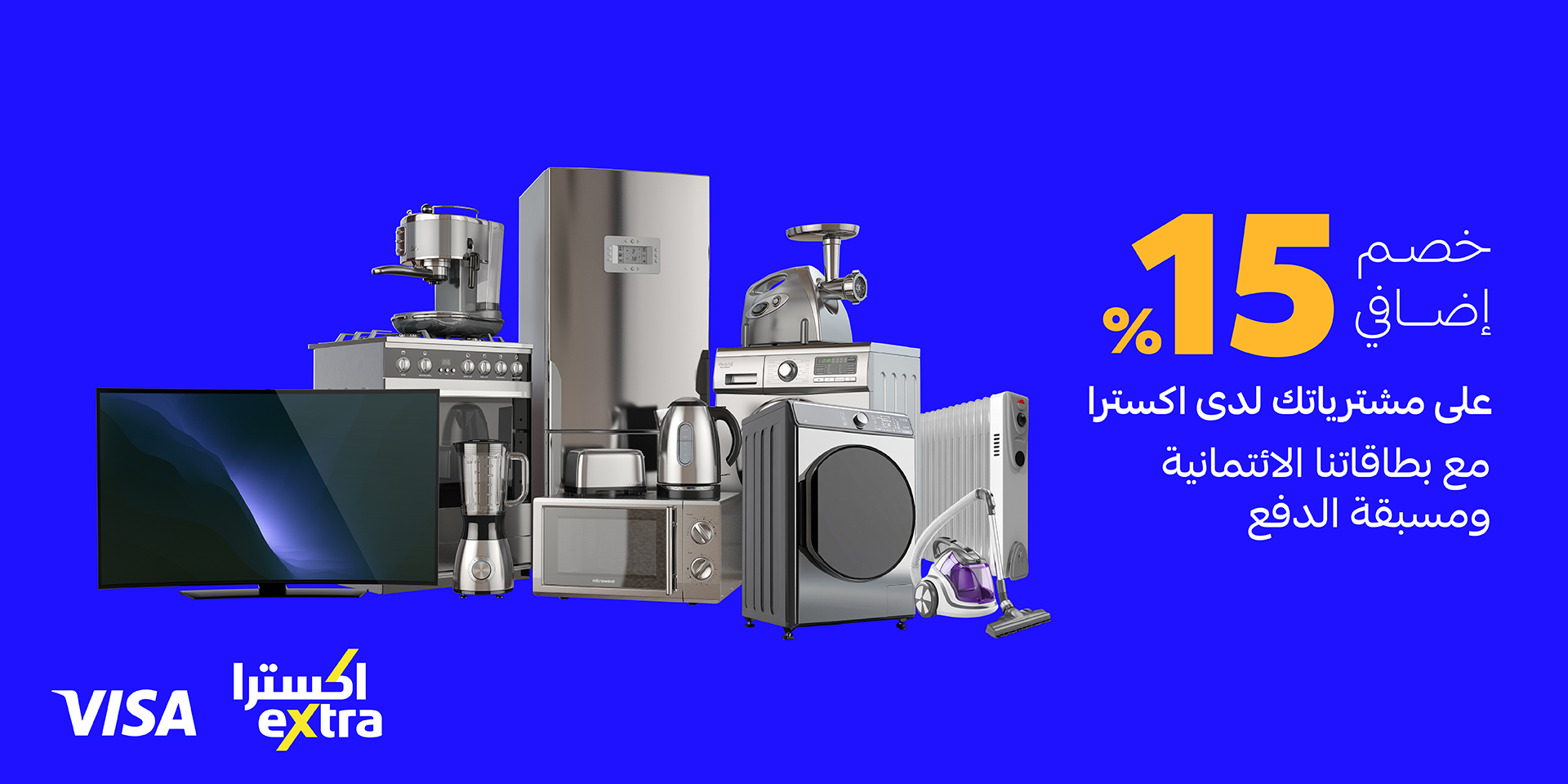 استمتع بخصم حصري إضافي بنسبة 15٪ على مشترياتك لدى اكسترا عند استخدام بطاقتك.