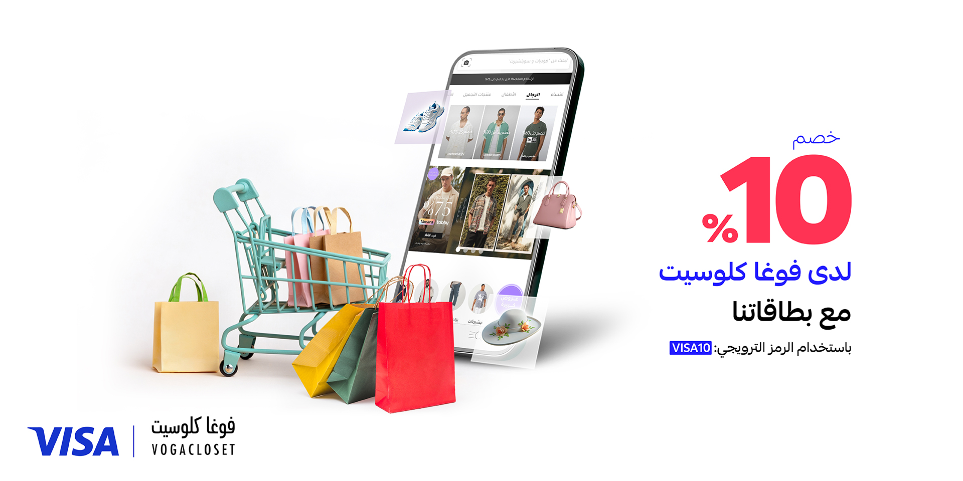 • لا يسري الخصم إلا عند استخدام رمز العرض الترويجي” VISA10“عبر تطبيق فوغا كلوسيت وصفحة الويب، وتفعيله عن طريق إدخال تفاصيل بطاقة Visa الخاصة بك.