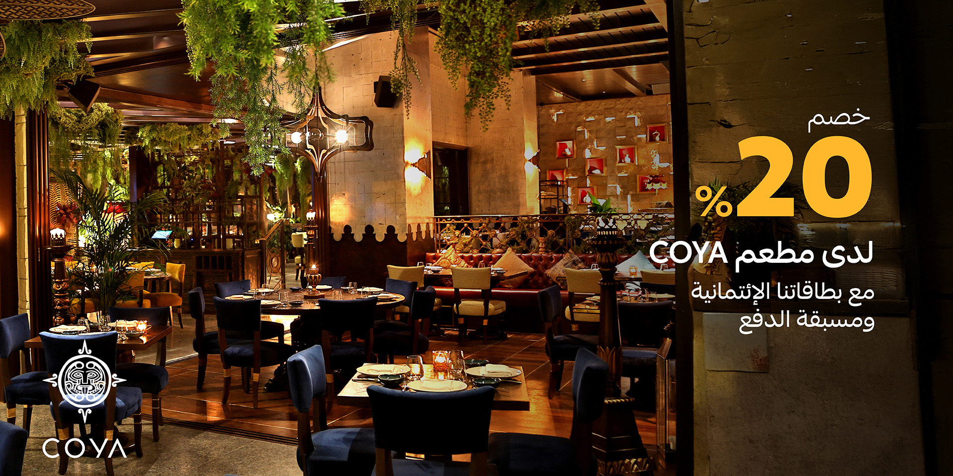 استمتع بخصم 20% لدى COYA للمأكولات الأمريكية اللاتينية