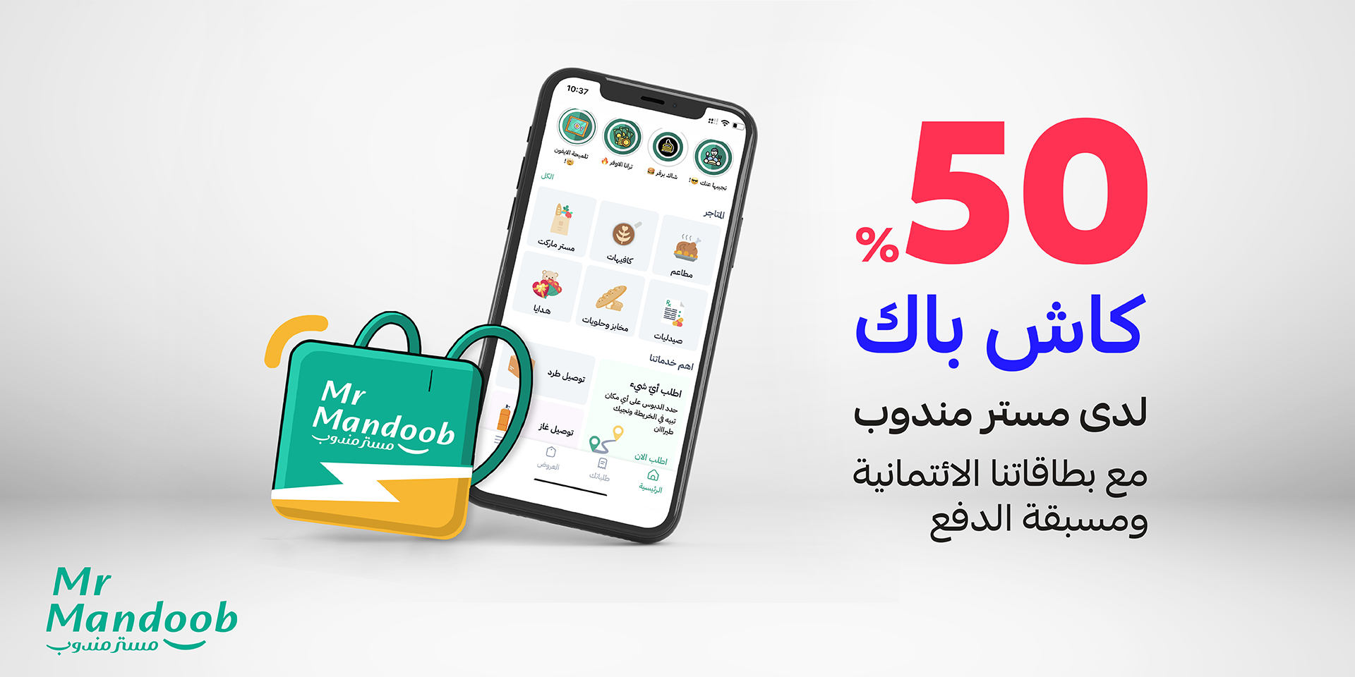 استمتع باسترداد نقدي بنسبة 50% لدى مستر مندوب