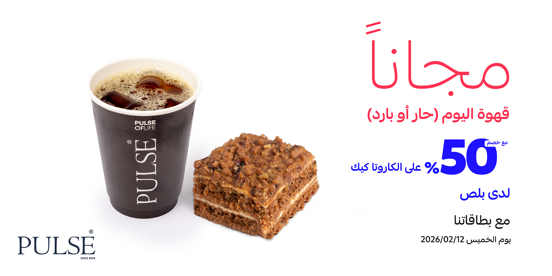 - احصل على قهوة اليوم (حار أو بارد) مجاناً وخصم 50% على الكاروتا كيك لدى فروع بلص