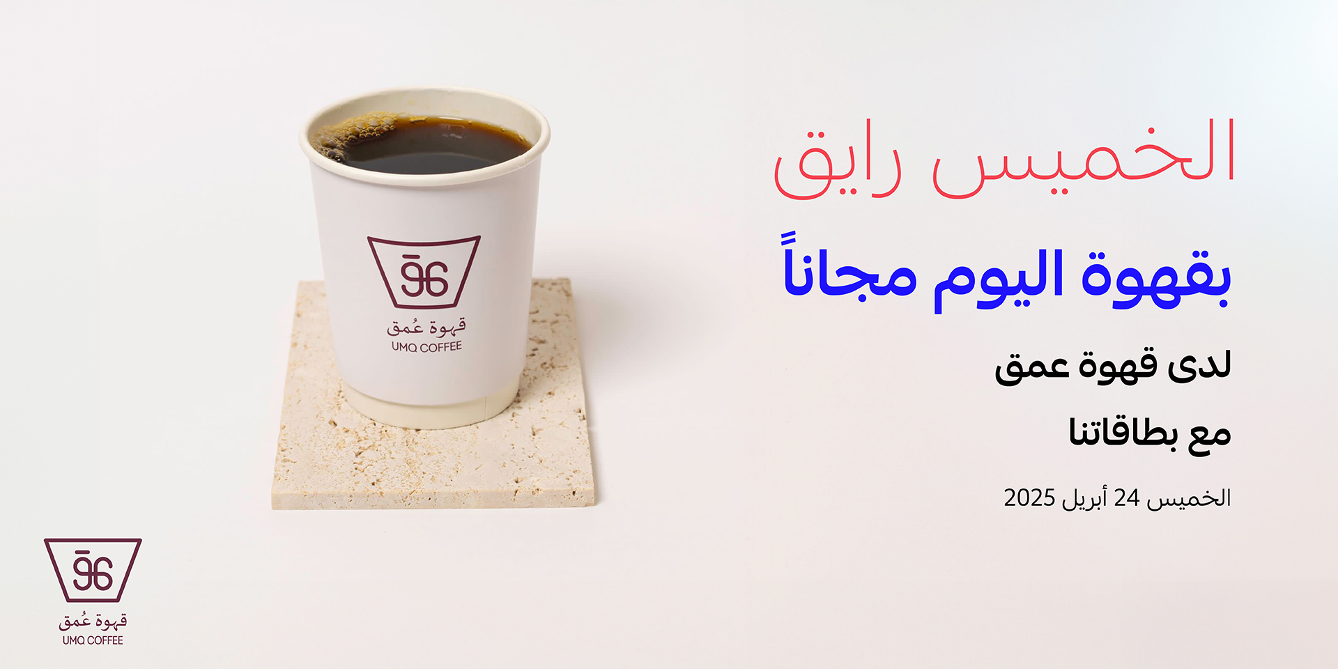 • احصل على كوب قهوة اليوم مجانا من قهوة عمق عند إبراز بطاقة مصرف الراجحي