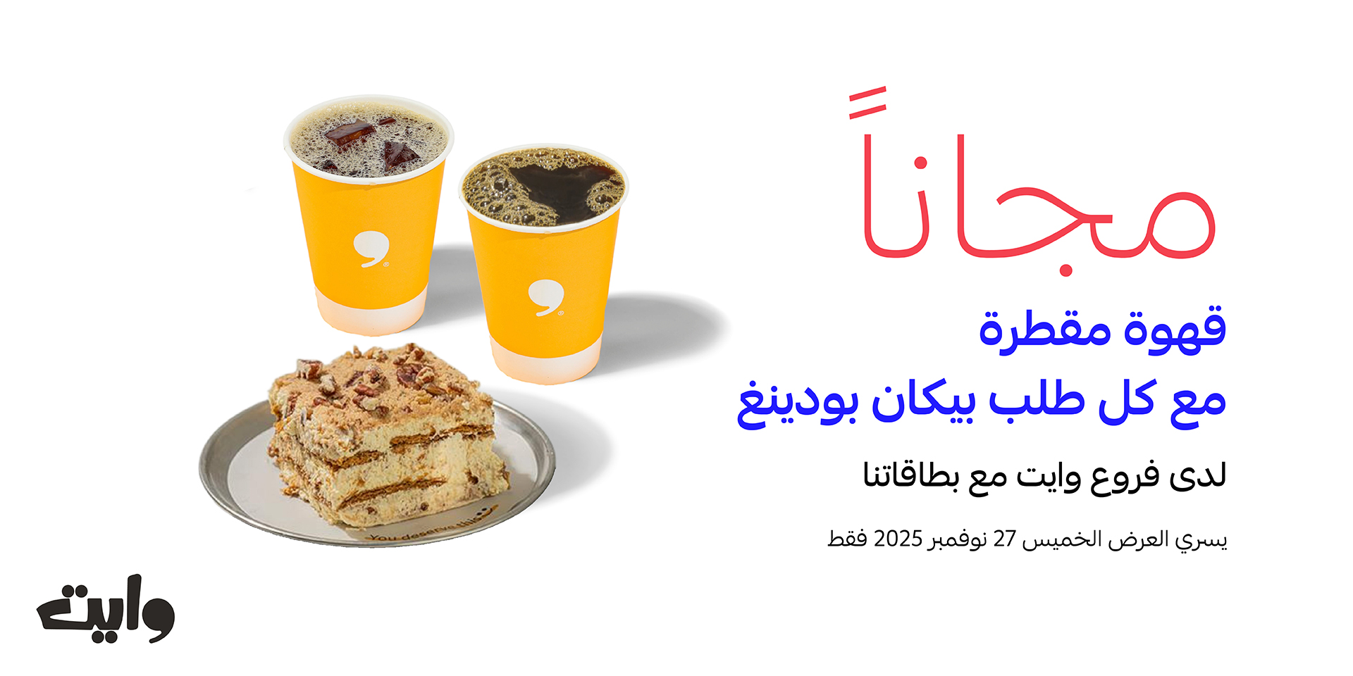 • اشتر بودينغ بيكان واحصل على قهوه مقطره مجانا في فروع وايت كافيه.