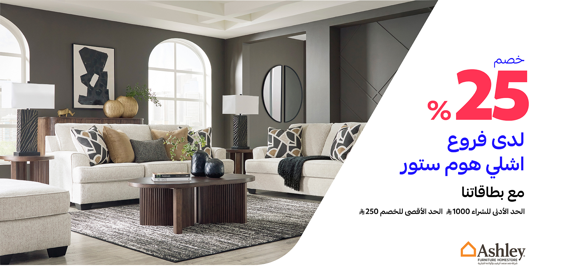 - احصل على خصم 25% عبر فروع اشلي هوم ستور