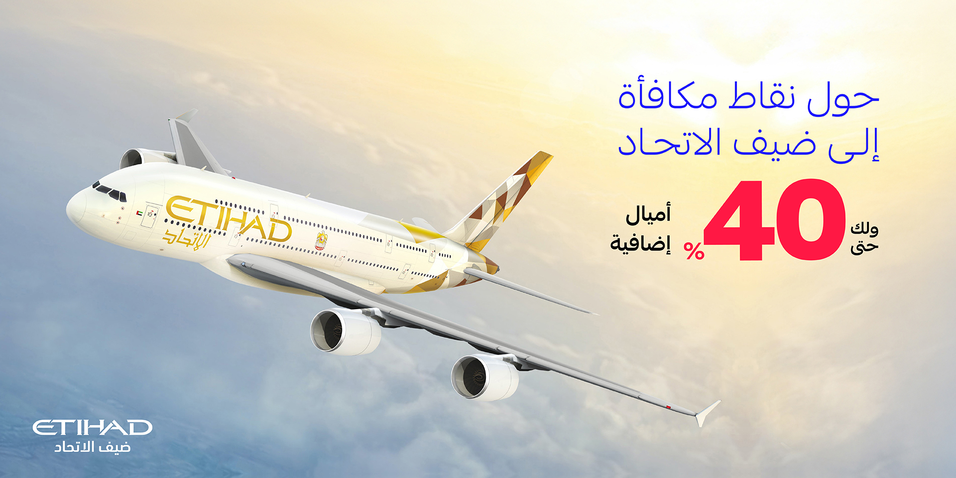 - تطبّق شروط وأحكام برنامج مكافأة وطيران الاتحاد.