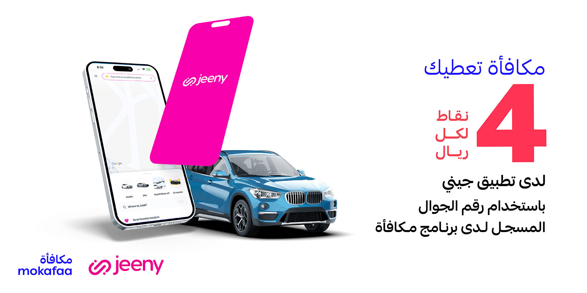 الآن مكافأة تعطيك 4 نقاط لكل (1 ريال) لدى جيني باستخدام رقم الجوال الخاص بك والمسجل لدى برنامج مكافأة