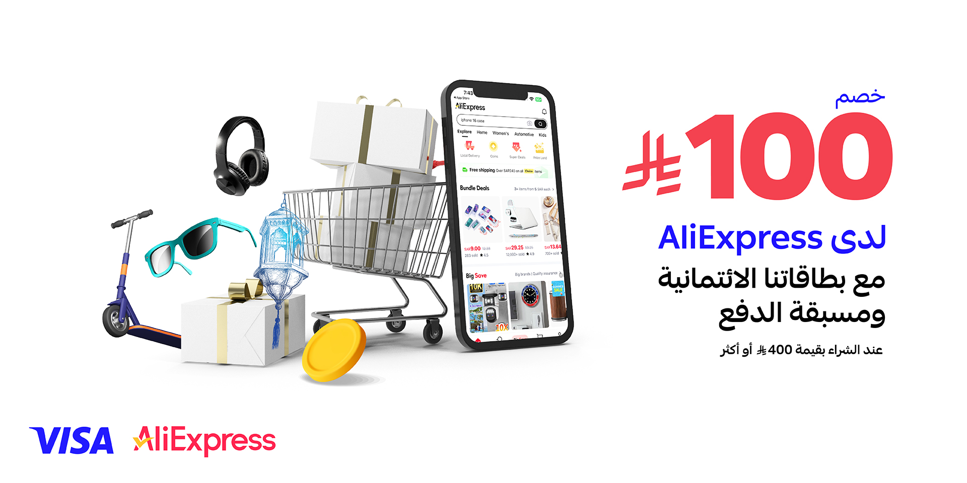 احصل على خصم 100 ريال عند الشراء بقيمة 400 ريال أو أكثر لدى التطبيق والموقع الإلكتروني لـ AliExpress