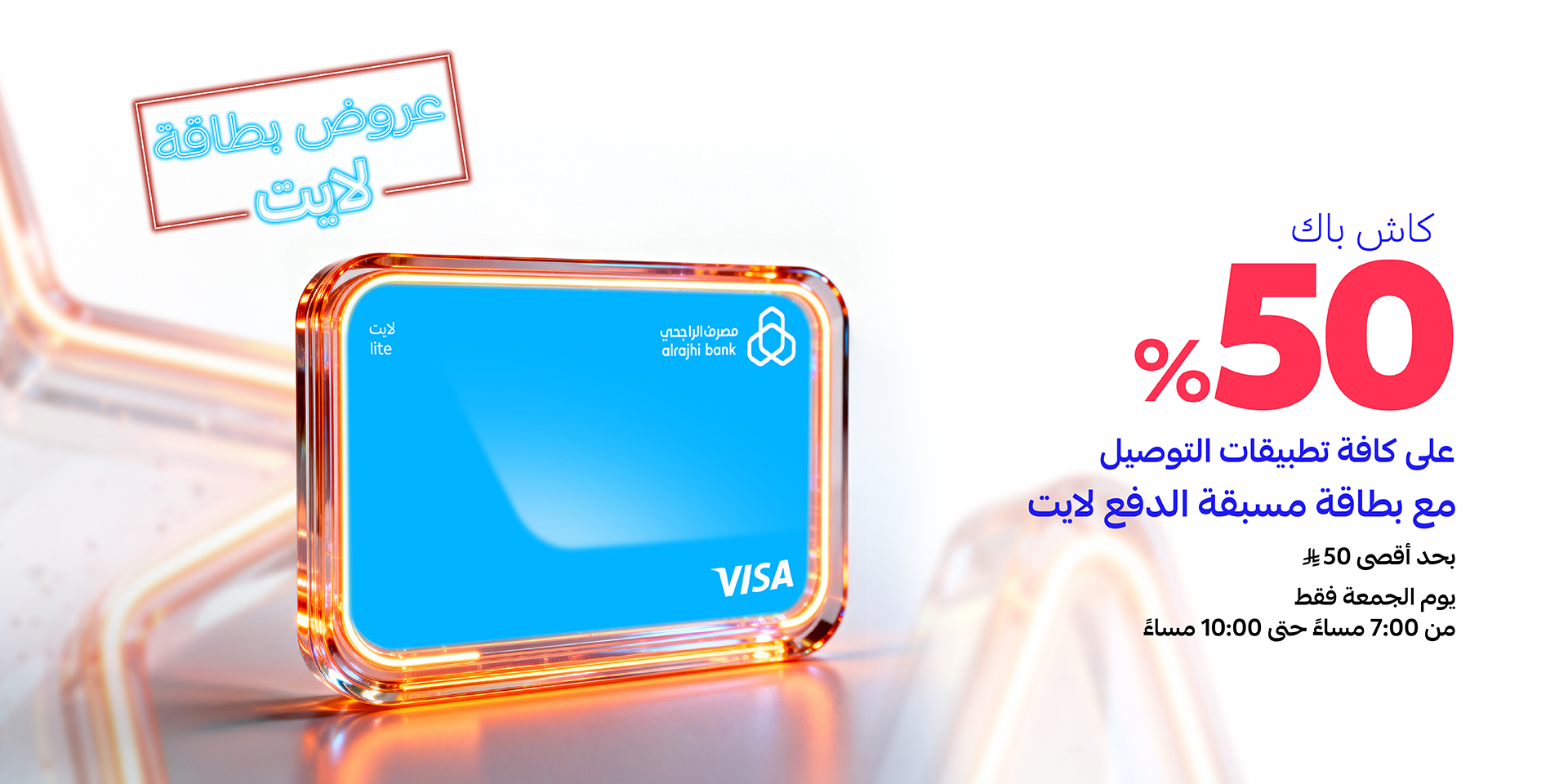• تطبق شروط وأحكام بطاقات مصرف الراجحي.