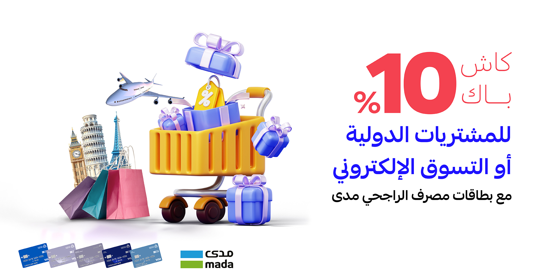 احصل على 10% استرداد نقدي على جميع مشترياتك الدولية أثناء سفرك خارج المملكة أو عند التسوق الإلكتروني