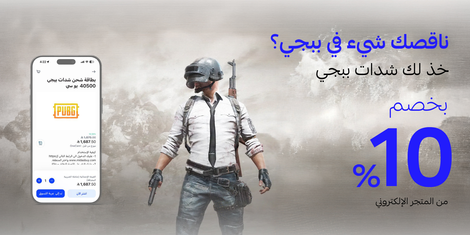 شدات ببجي بخصم 10% عبر المتجر الإلكتروني.