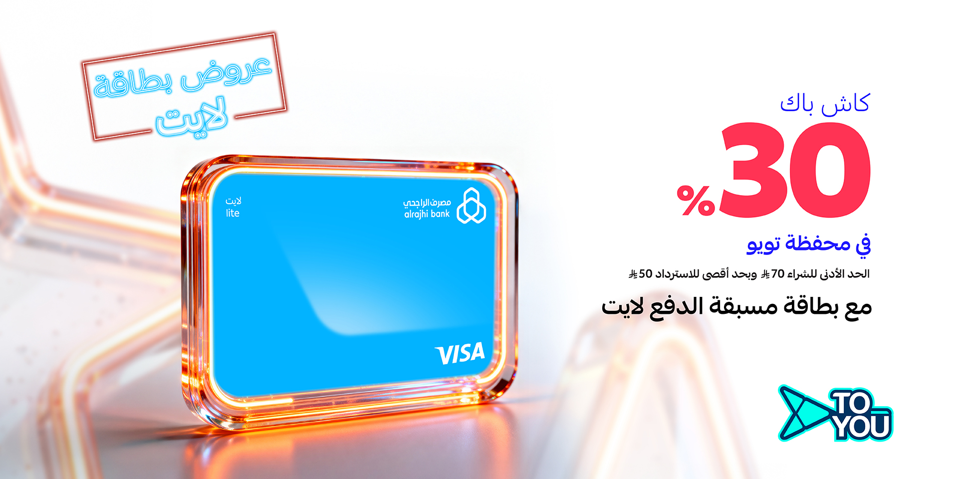 - يطبق العرض على بطاقة مصرف الراجحي مسبقة الدفع لايت.