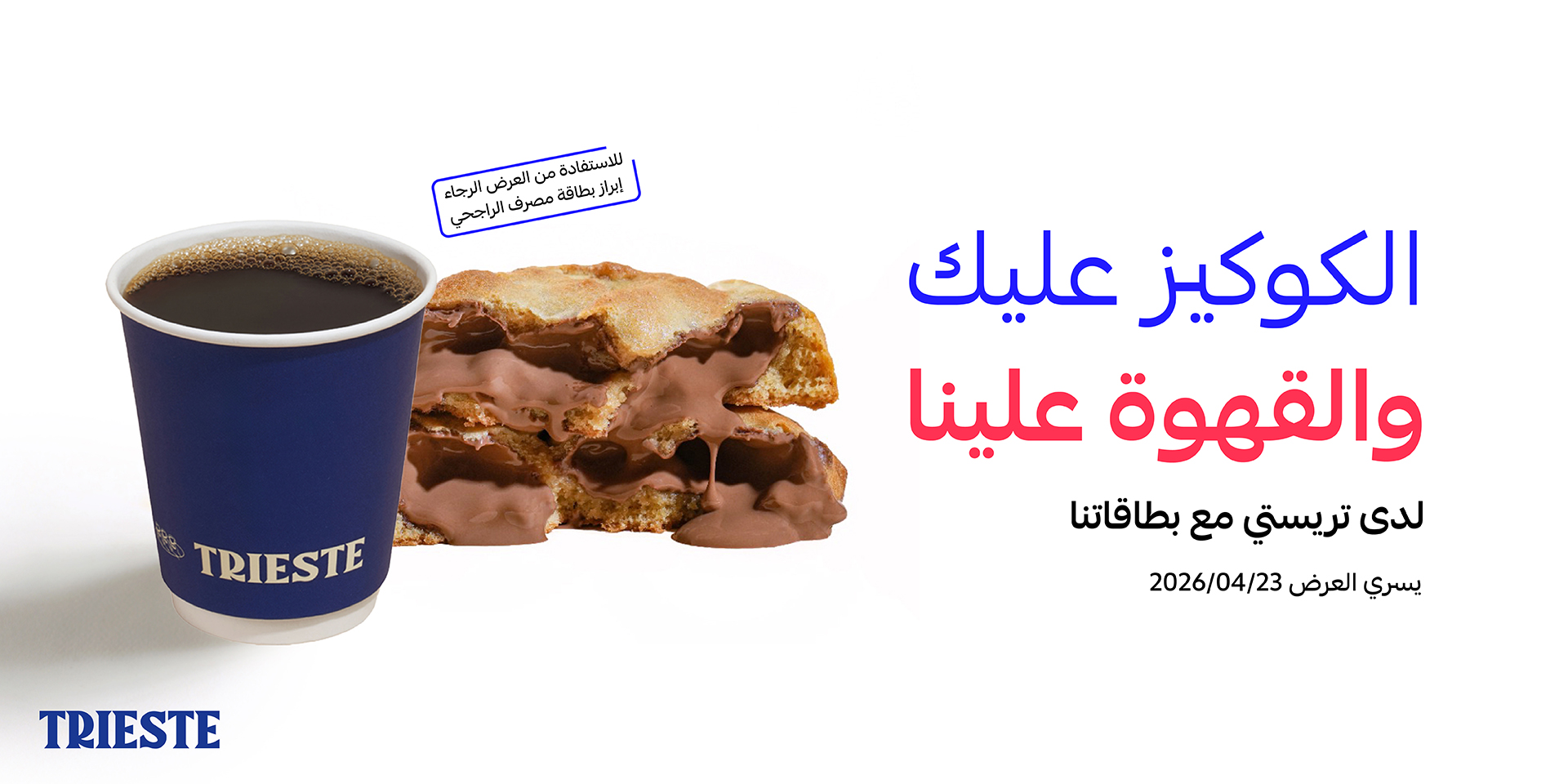 - اشتر كوكيز نوع كلاسيك أو نوع كيندر واحصل على قهوة اليوم حجم كبير باردة أو حارة مجاناً لدى تريستي عند إبراز بطاقة الراجحي