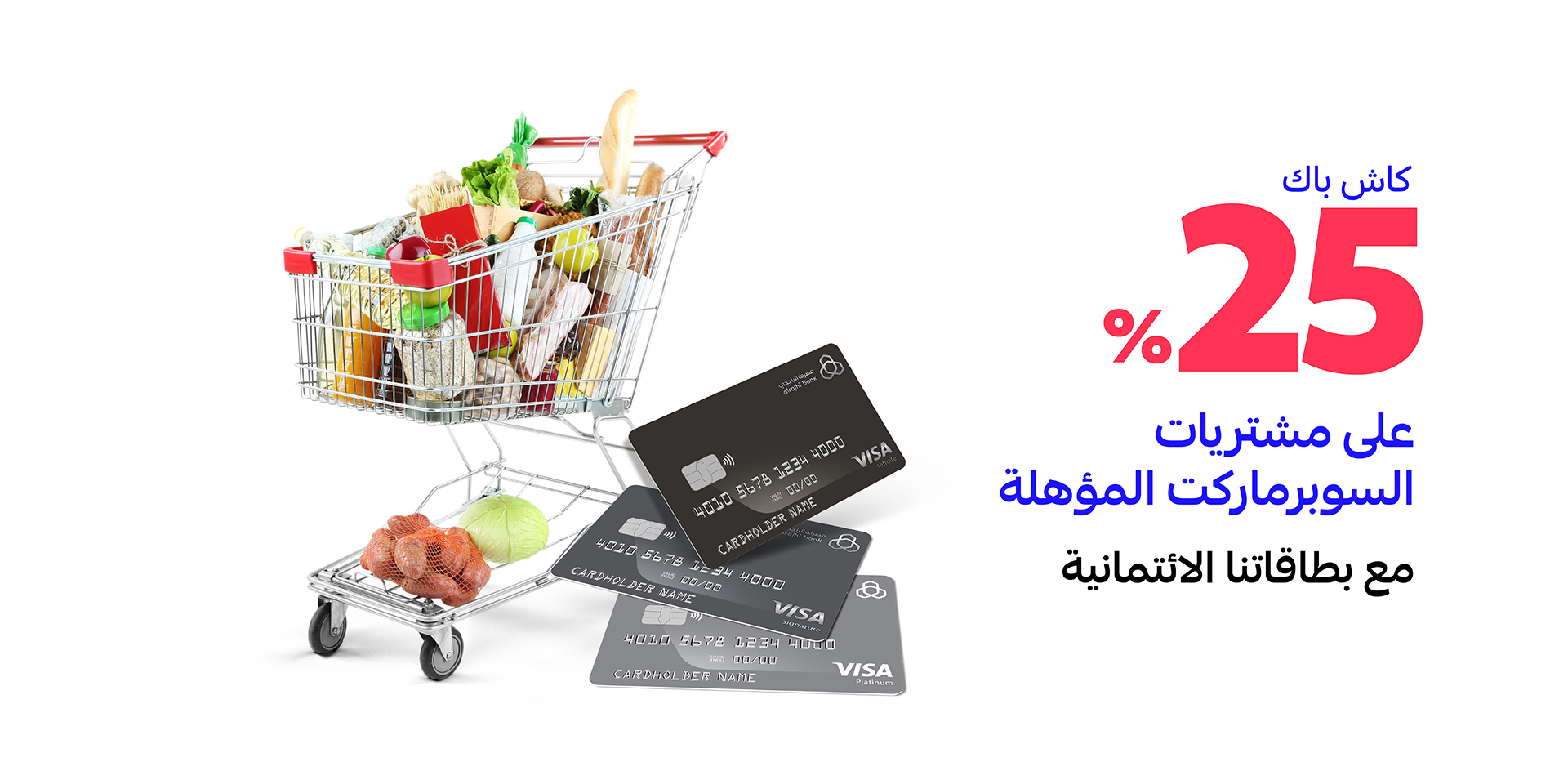استمتع كاش باك 25٪ على مشتريات السوبرماركت باستخدام بطاقتك الائتمانية