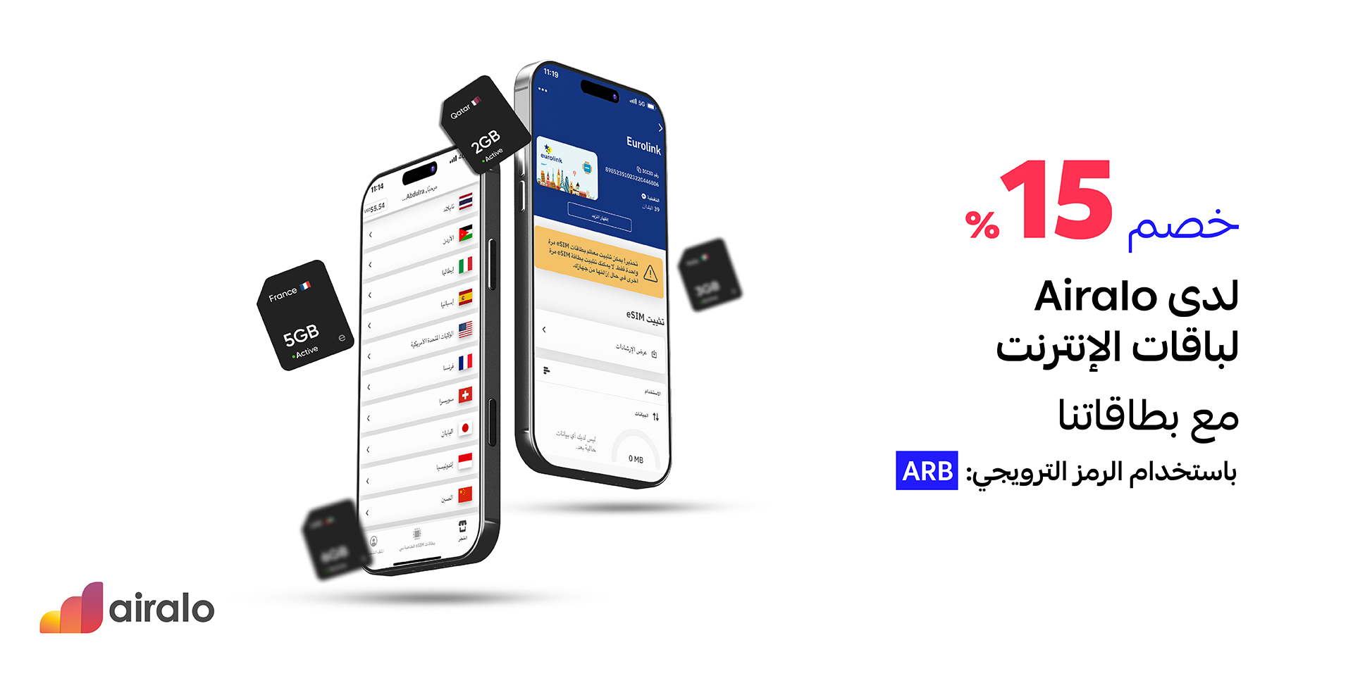 • احصل على خصم 15% عبر تطبيق Airalo.