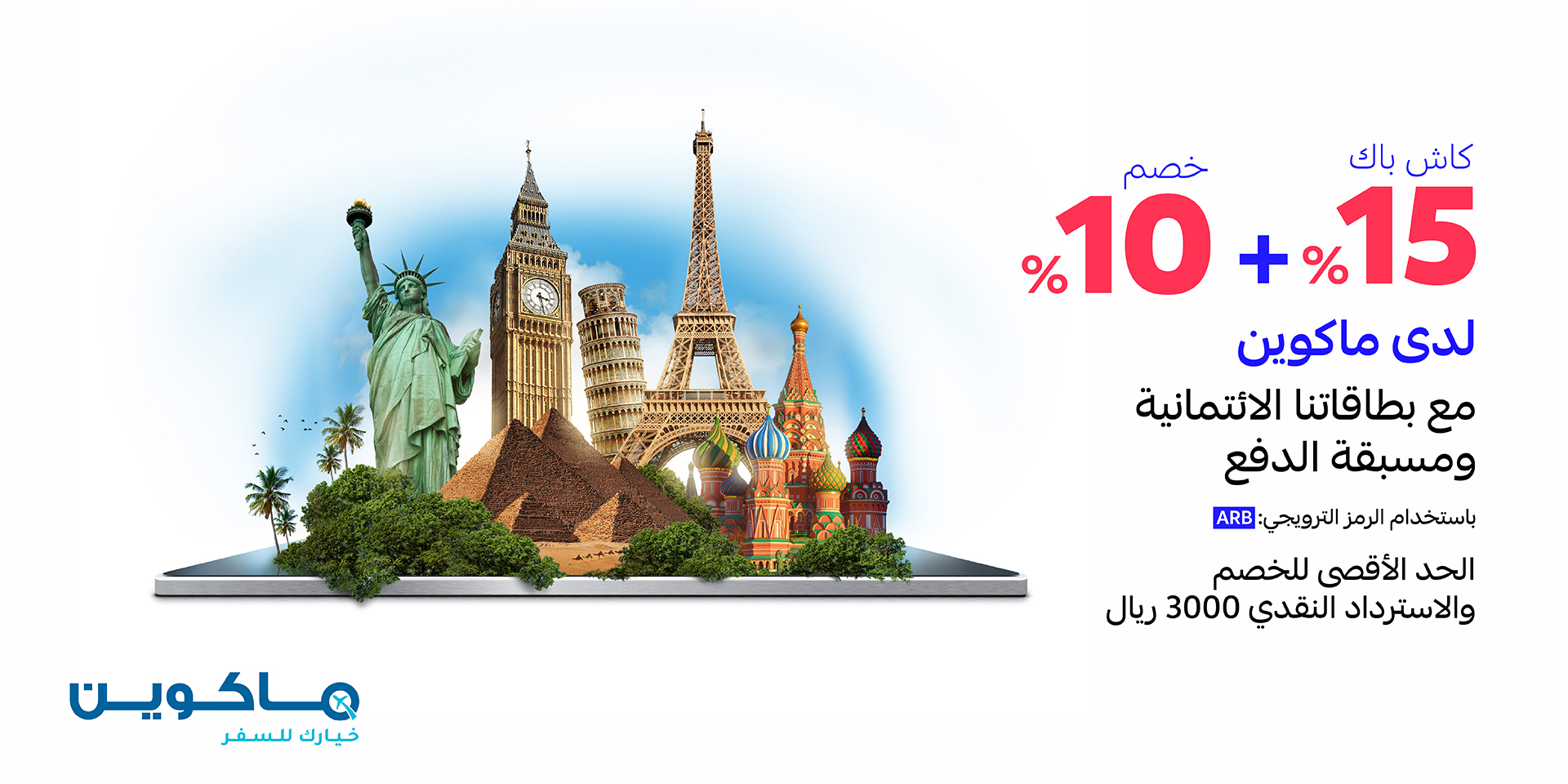- الحد الأقصى للخصم والاسترداد النقدي 3000 ريال.