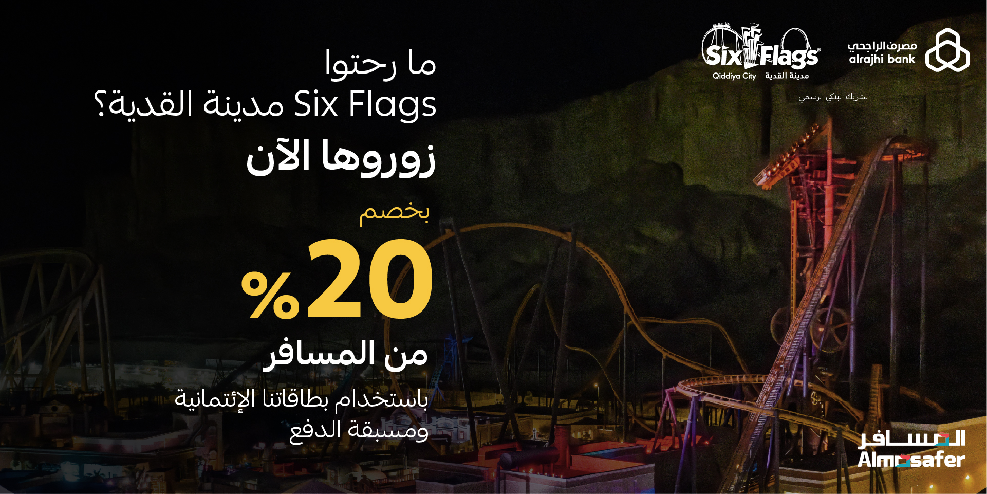 - تطبق شروط وأحكام مصرف الراجحي و المسافر وSix Flags مدينة القدية.