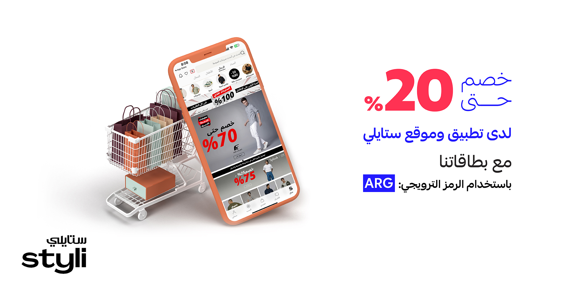 - احصل على خصم 20% عبر تطبيق والموقع الإلكتروني الخاص بستايلي على المنتجات الغير مخفضة
