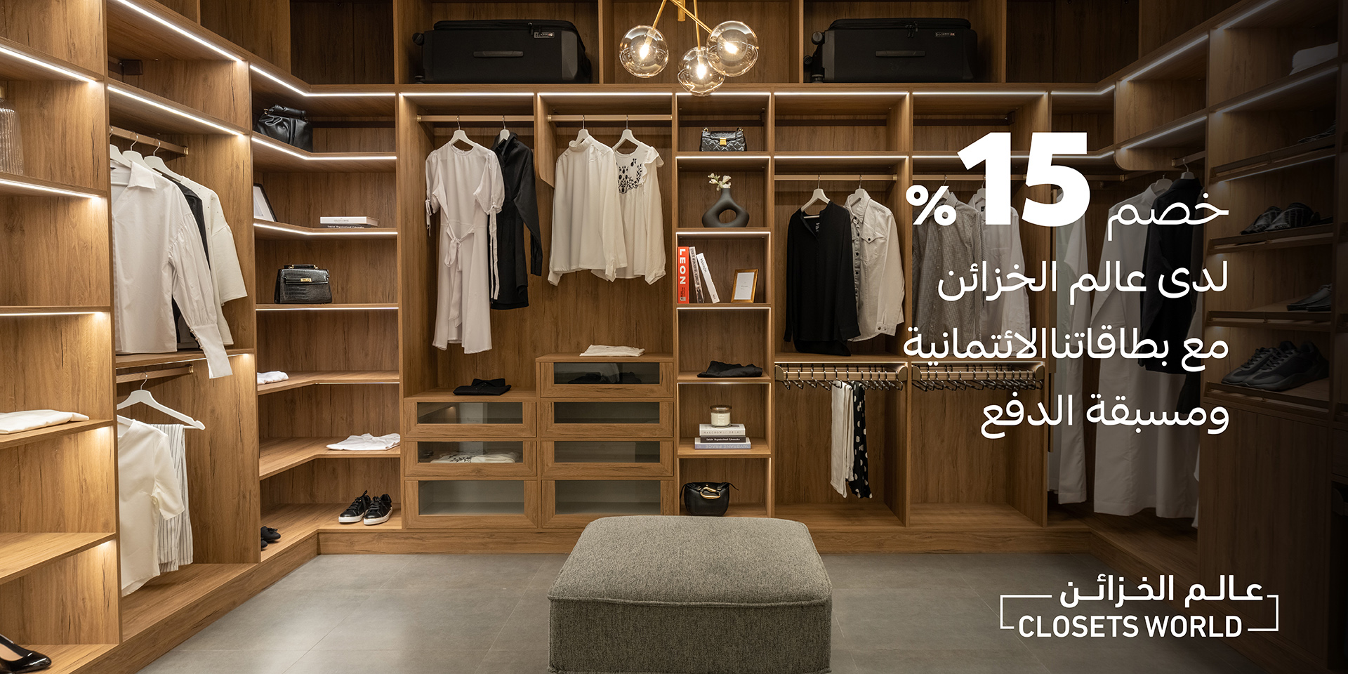 - احصل على خصم 15% على جميع المنتجات لدى معارض عالم الخزائن.