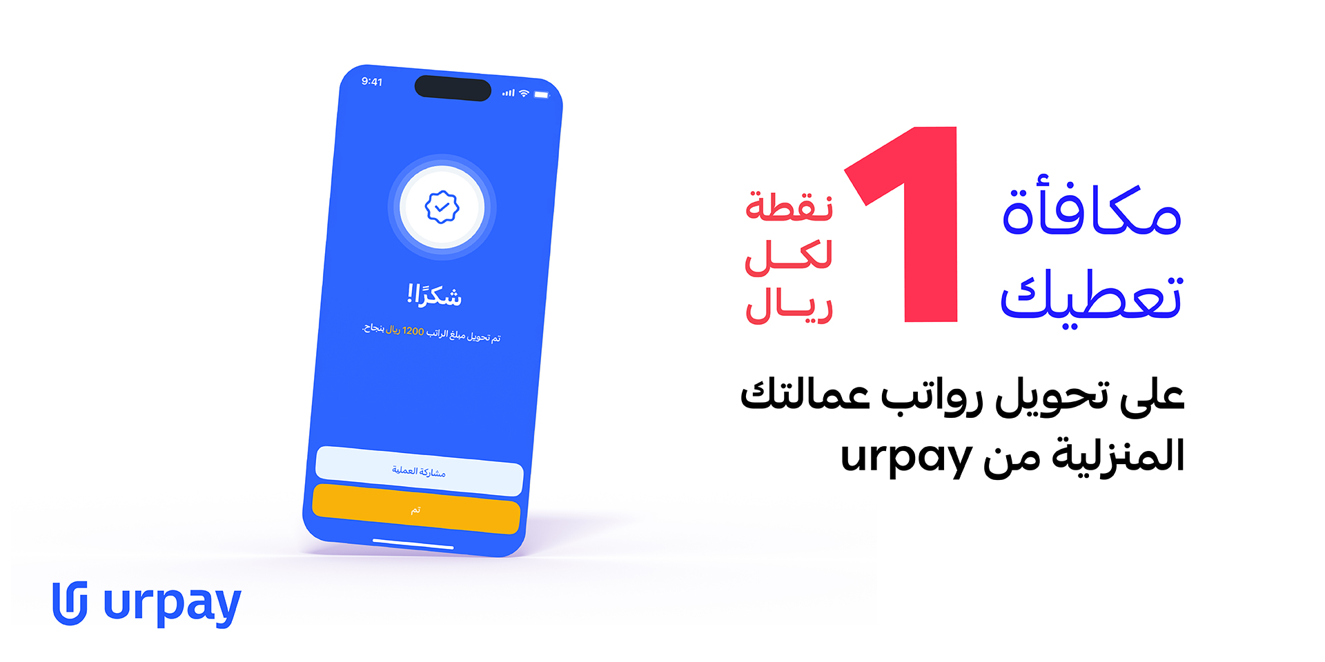- نقطة مقابل كل 1 ريال في دفع راتب العاملة المنزلية من خلال خدمة مساند في تطبيق urpay.