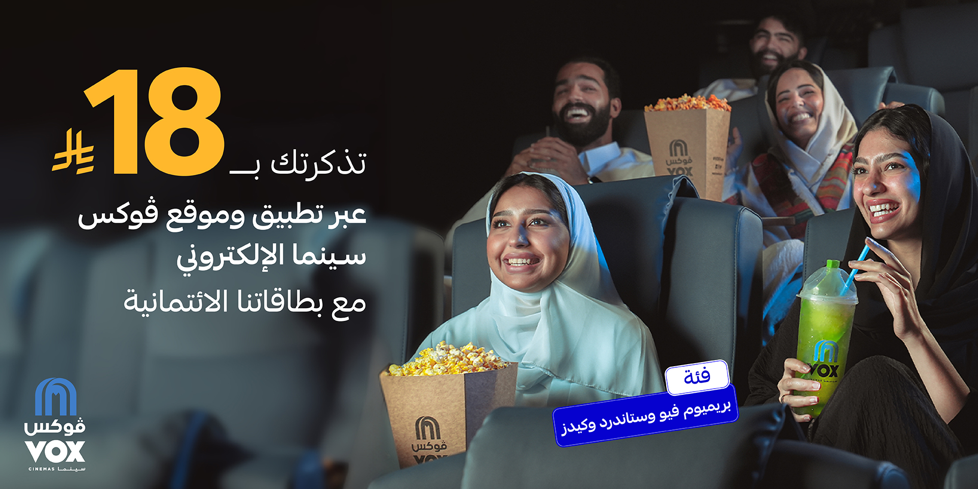 احجز تذكرتك بـقيمة 18ريال من خلال تطبيق وموقع ڤوكس سـيـنـمـا من فئة بريميوم فيو وعادية وكيدز