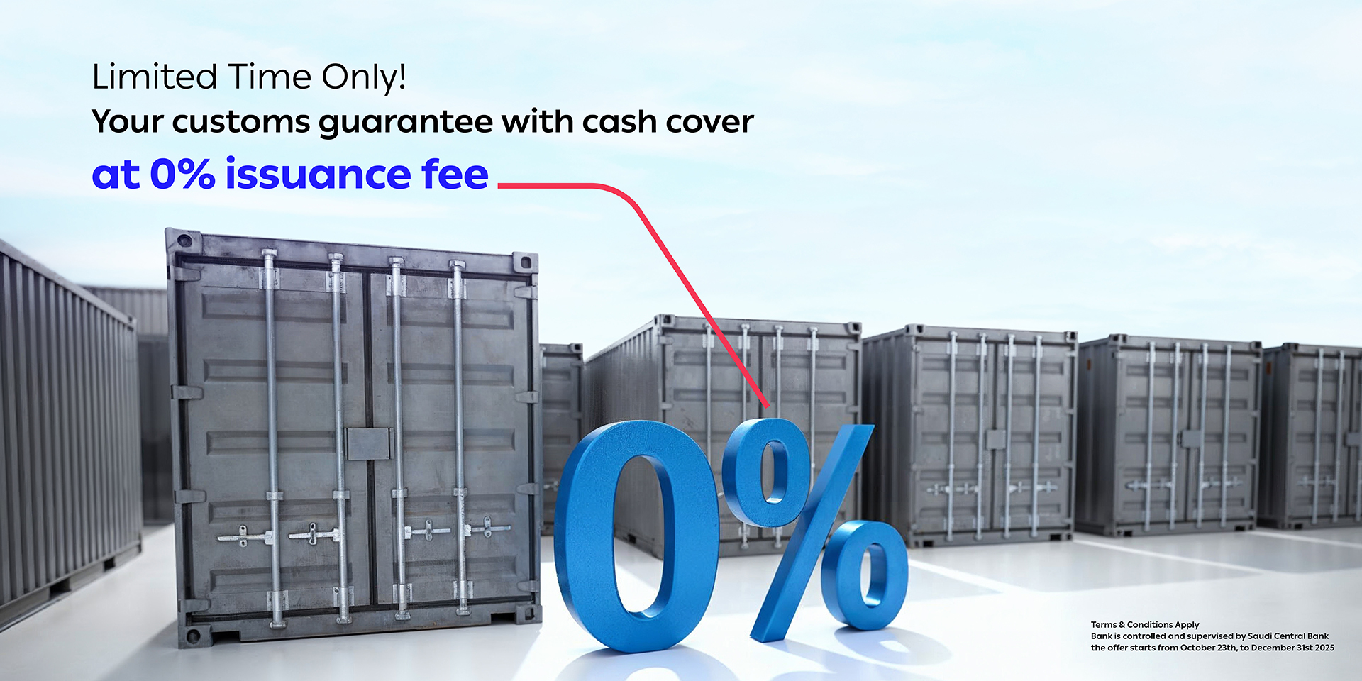 - Offer is applicable to all clients issuing Customs Guarantees with 100% cash cover.