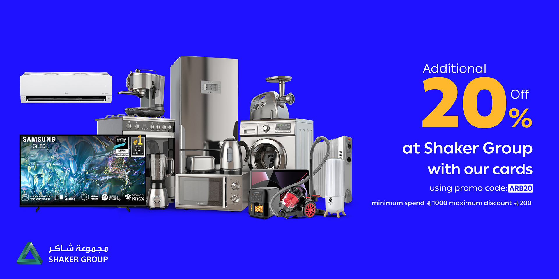 Get 20% additional Discount maximum value 200 SR at Shaker Group