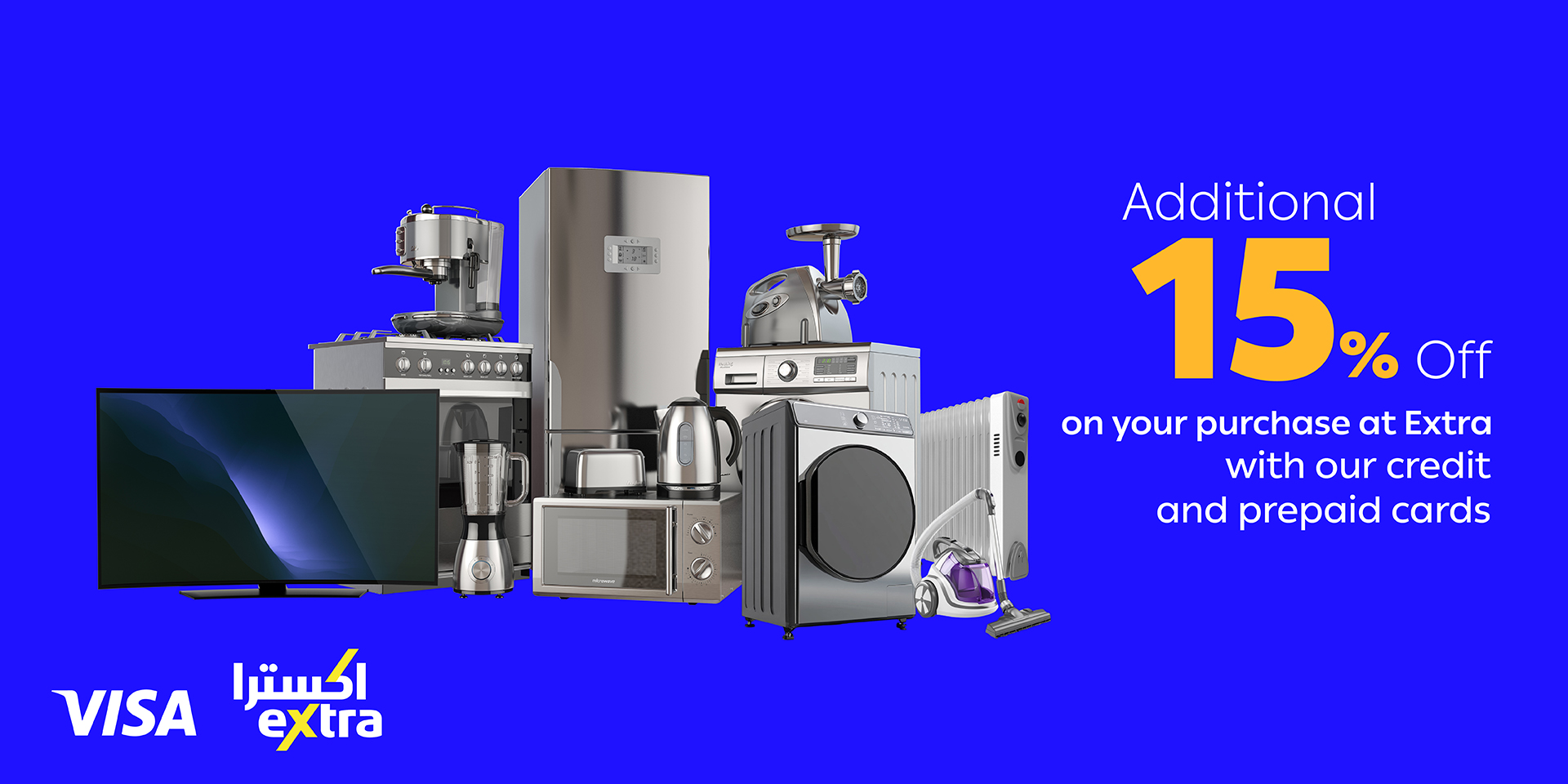 Enjoy exclusive additional 15% OFF on your purchase at eXtra Mega Sale using your card.