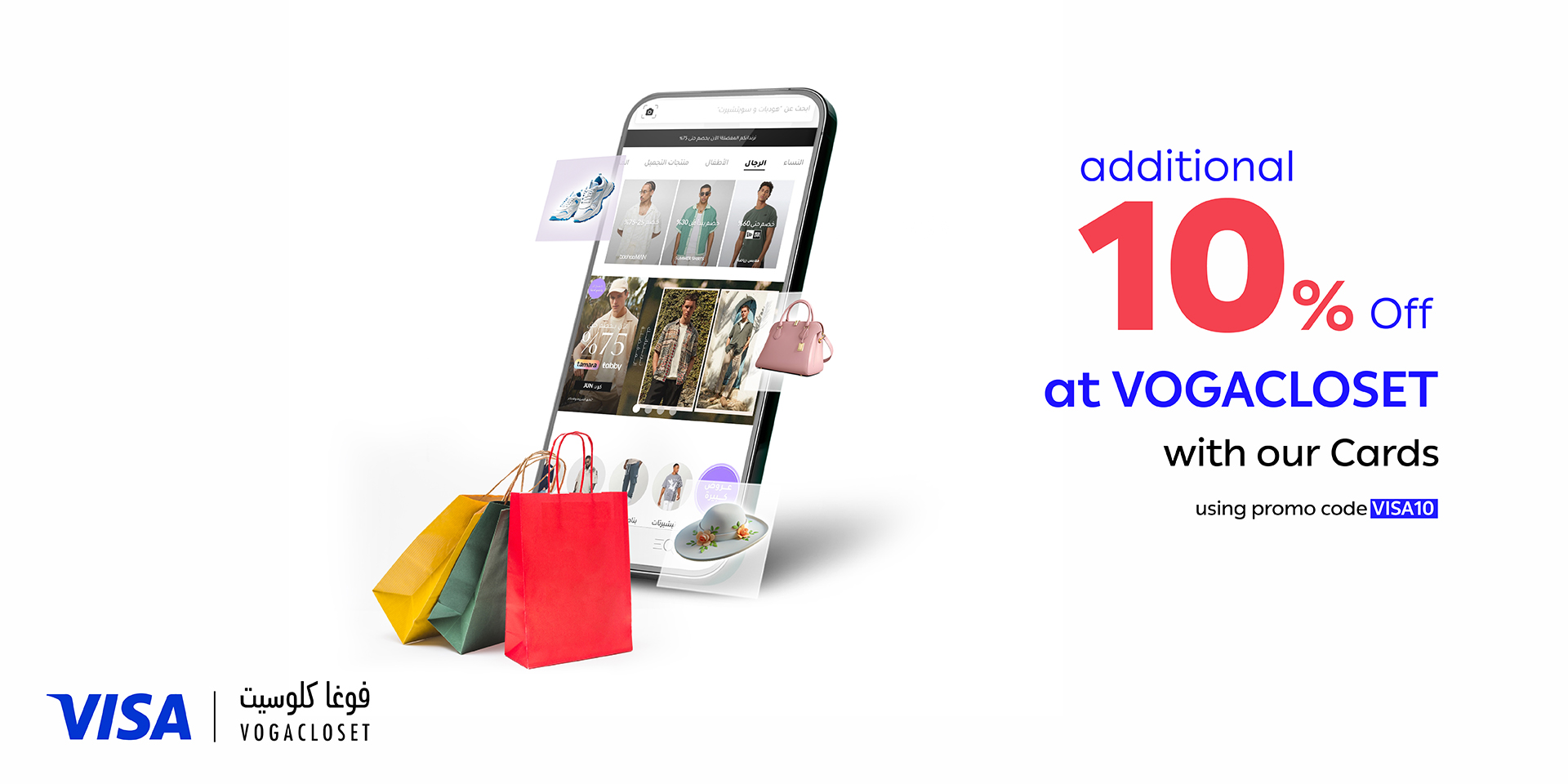 - Get 10% additional OFF is only applicable when you use the promCode “VISA10” across the VogaCloset App & web page.