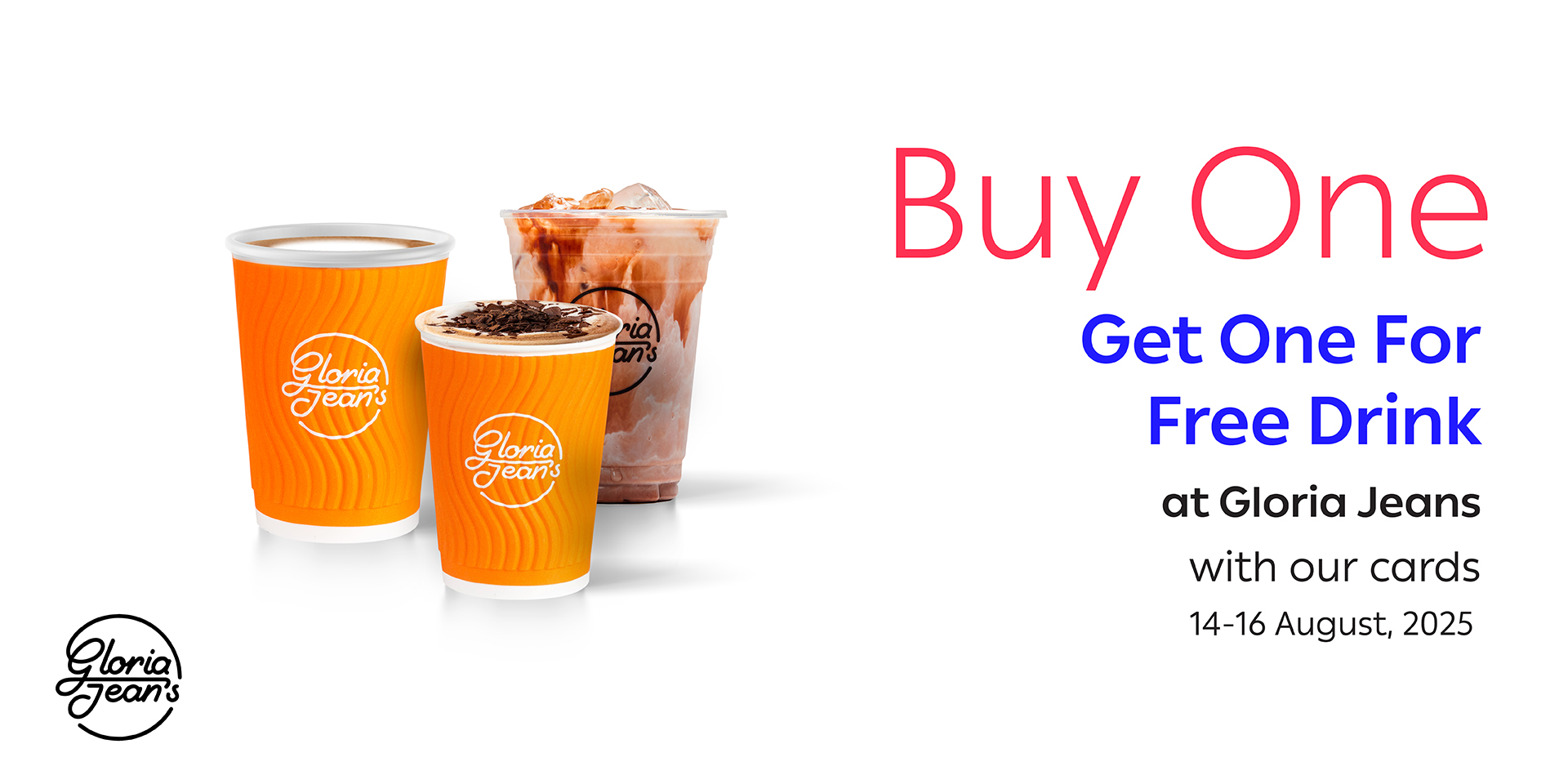 - Buy any drink Hot or Cold and get the second drink for free at Gloria Jeans Branches