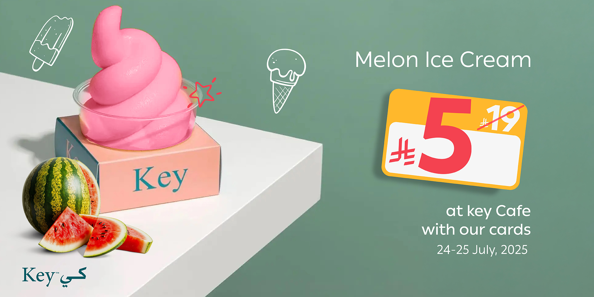 - Get Ice cream melon for only SAR 5 at Key Café selective branches (Irqah, Takhassusi, Al Rabie) only.