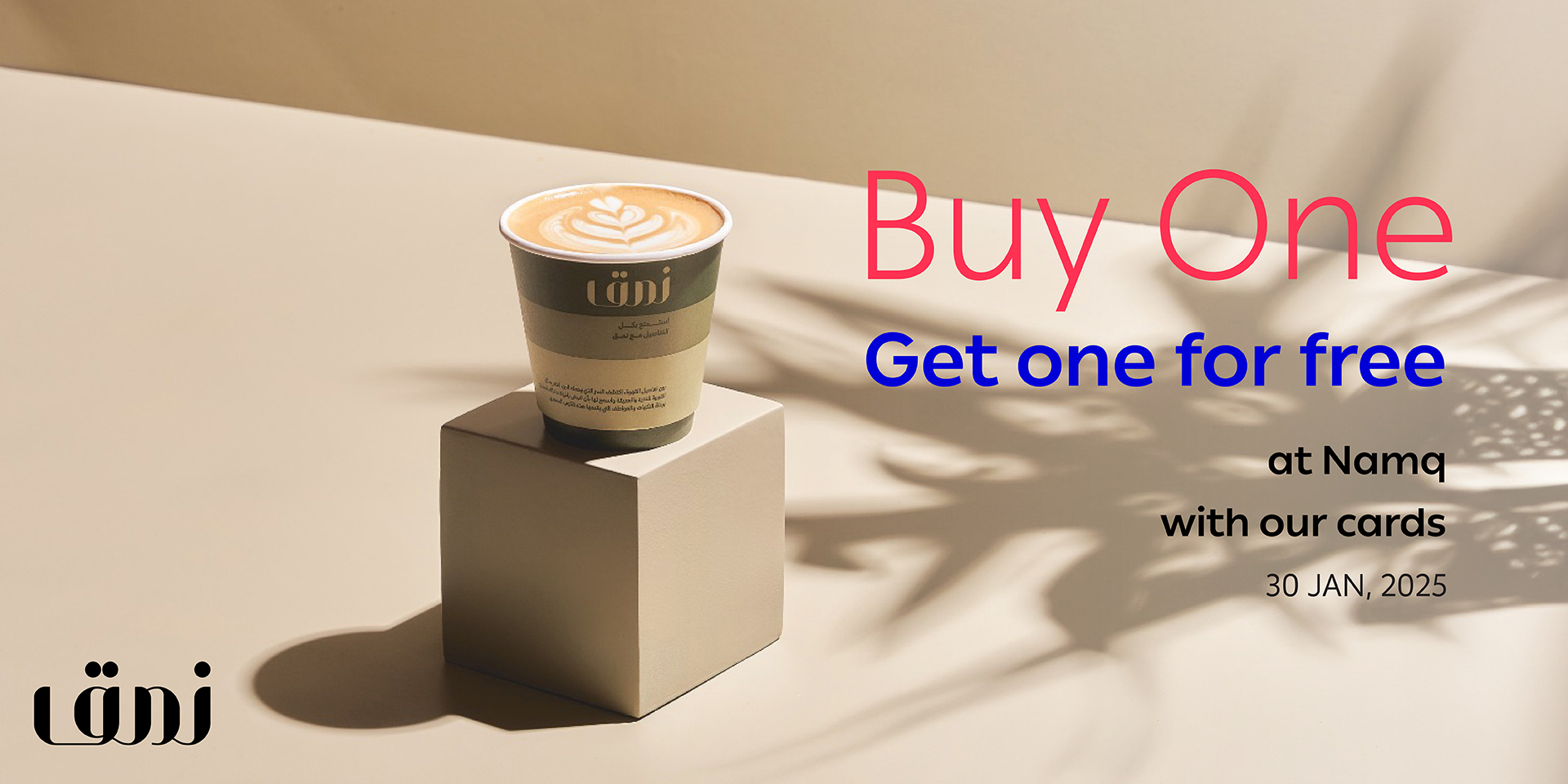- Buy Coffee and get the second one for free at Namq branches.