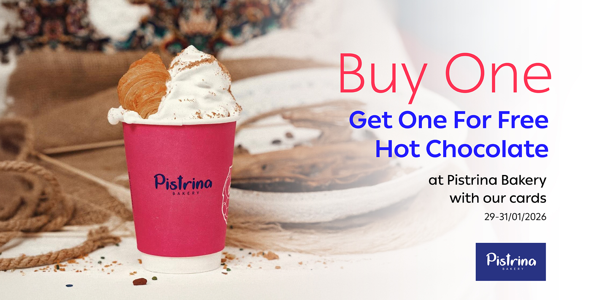 - Buy Hot Chocolate and get the second for free at Pistrina Bakery branches