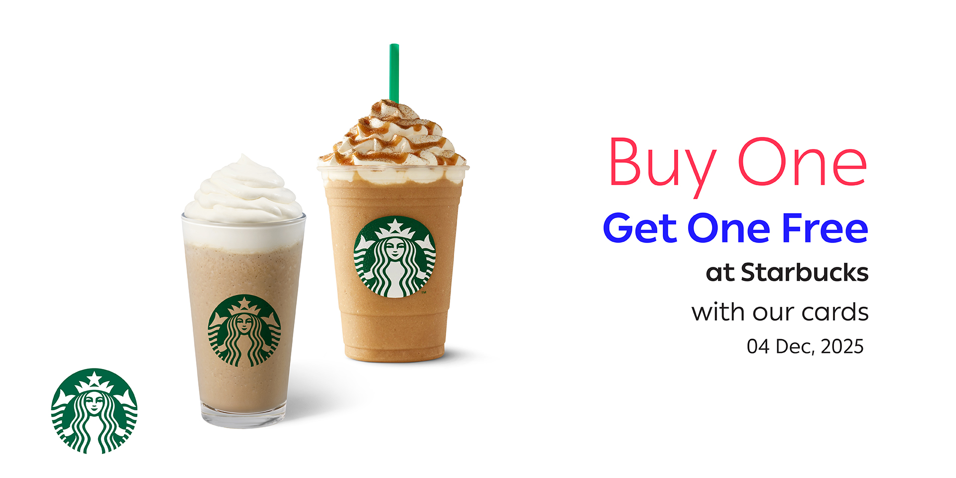 - Buy any handcrafted beverage in Grande and Venti sizes only and get the second for free at Starbucks branches