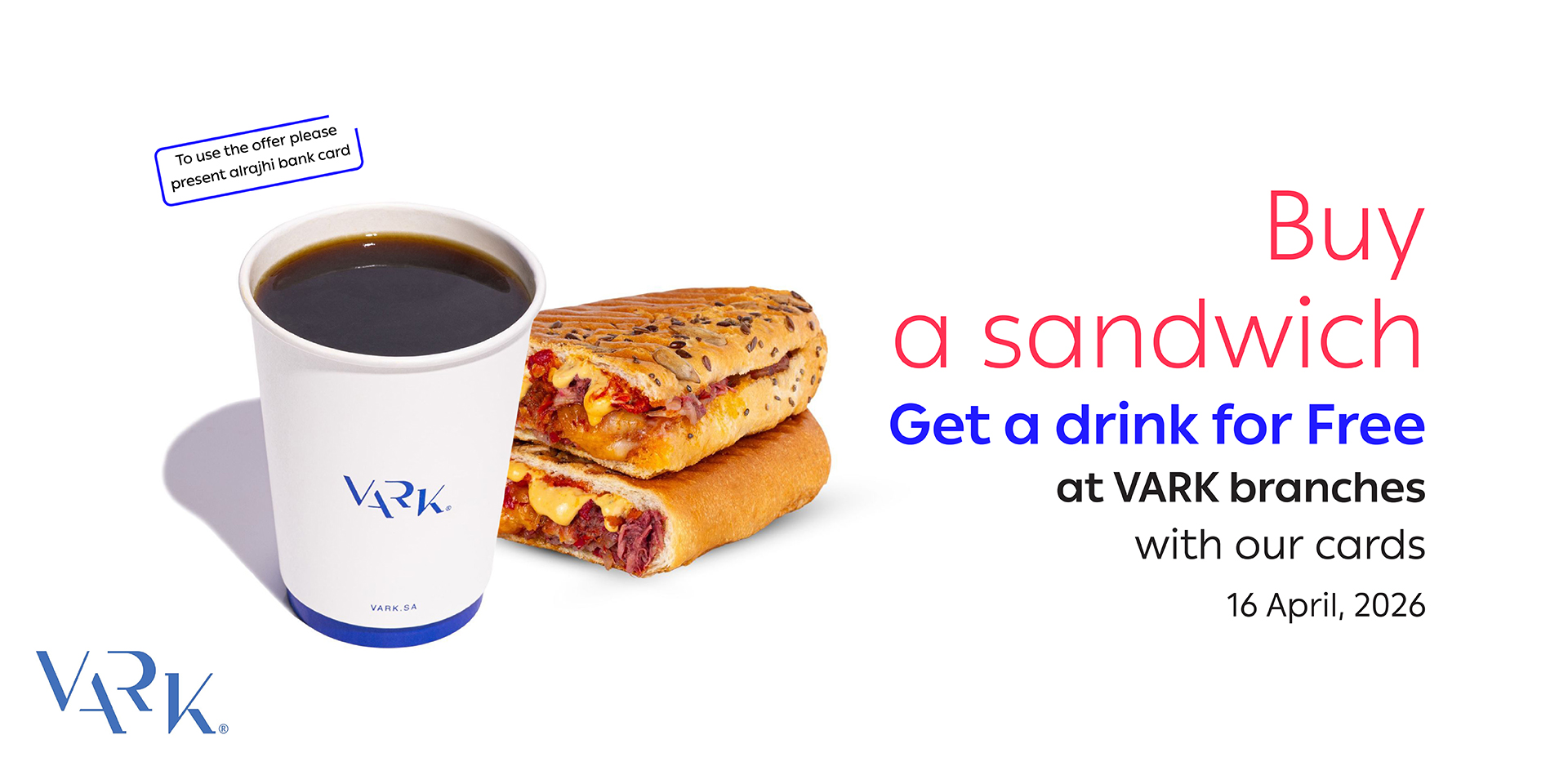 - Get A free drink when buying any sandwich at VARK