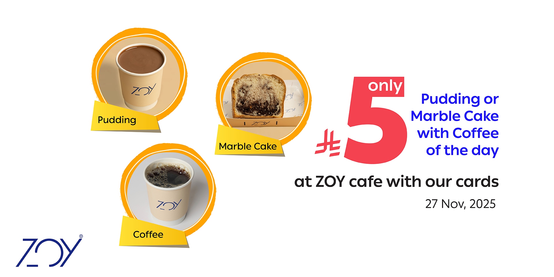 - Pudding or Marble Cake with Coffee of the day (hot or iced) 5 SAR at Zoy Café