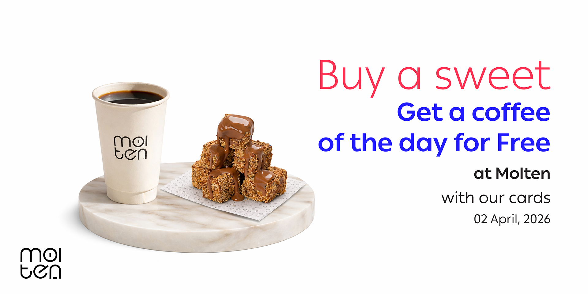 Buy any sweet and get free coffee of the day at Molten