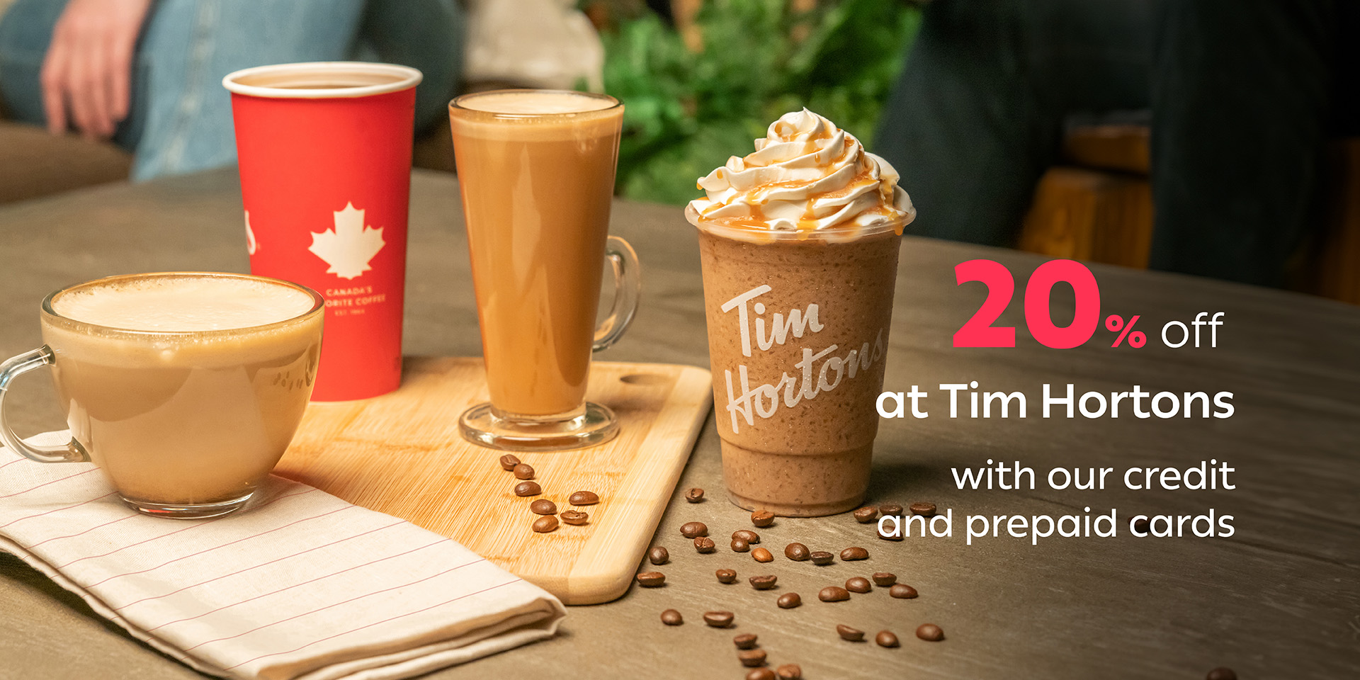 - Get 20% OFF on all drinks at Tim Hortons outlets.