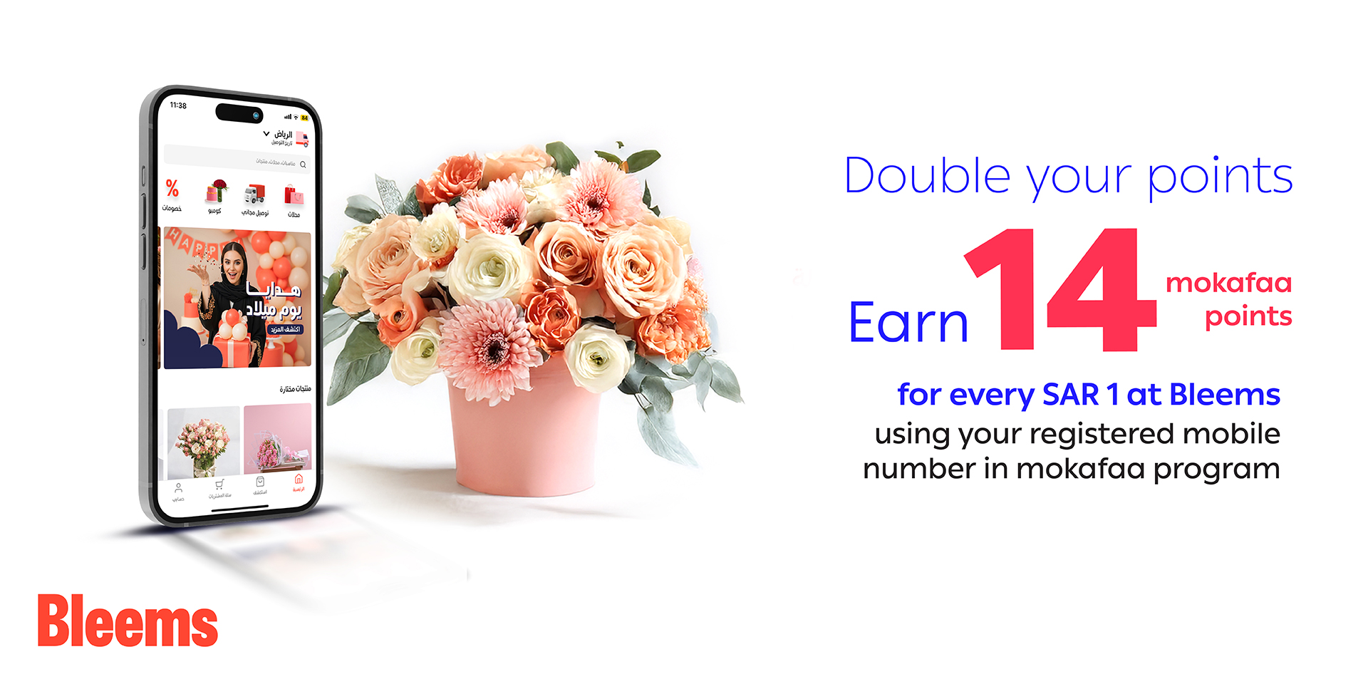 Don’t miss out!Double your points now with mokafaa Program when spent through the Bleems app or website