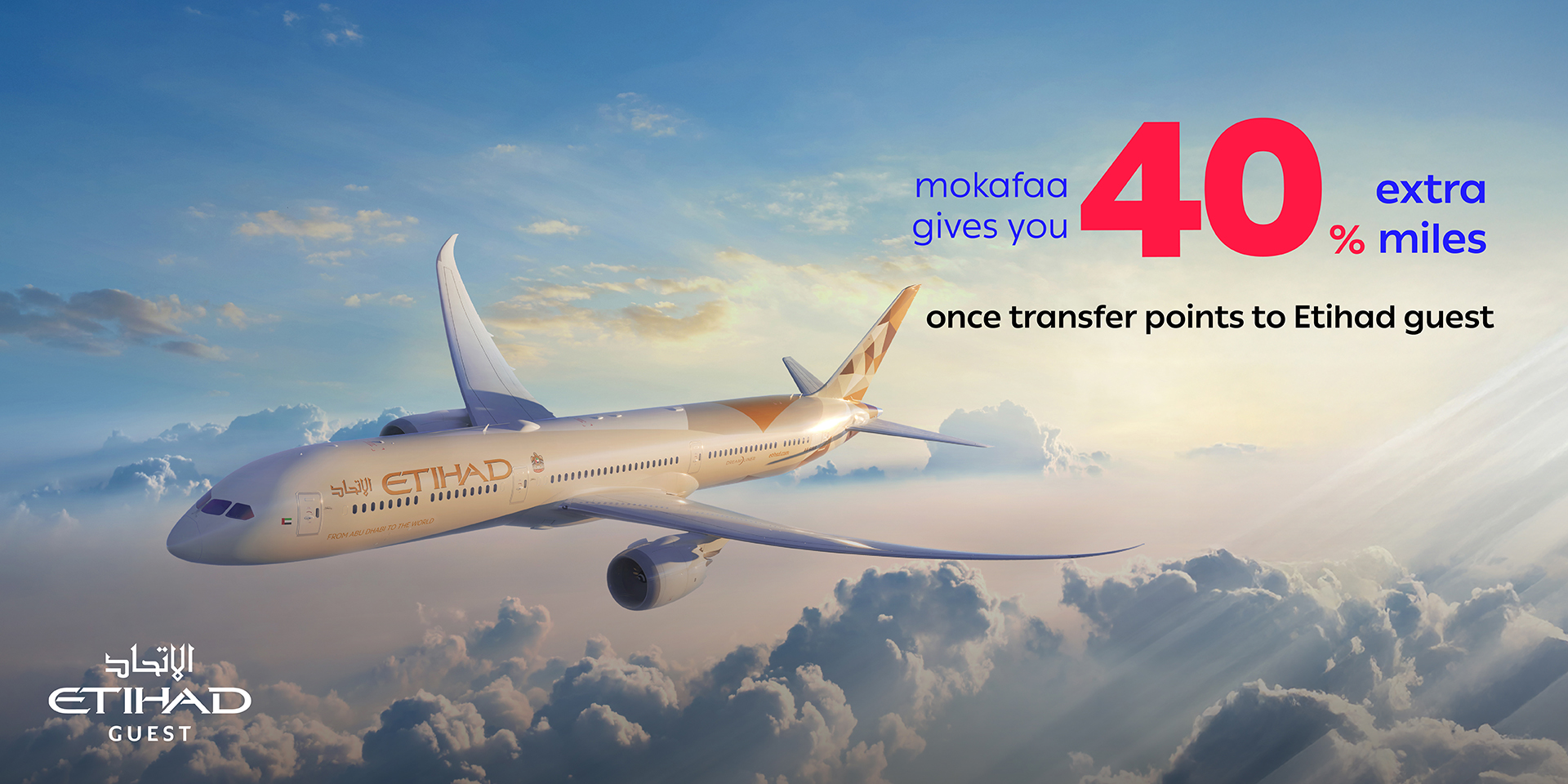 - Transfer mokafaa points to Etihad Guest Miles and you'll receive up to 40% bonus Miles based on the number of Miles converted in a single transaction during the campaign period.