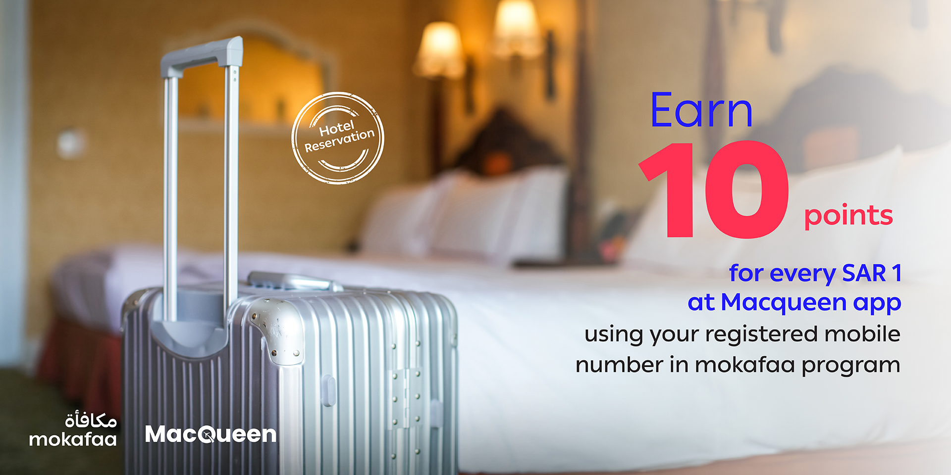 Earn 10 mokafaa points on every 1 SAR spent on hotel bookings via MacQueen app
