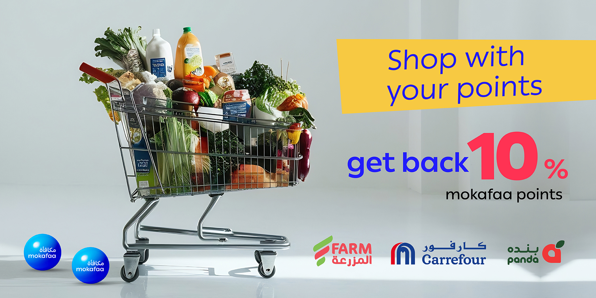 Visit Farm Superstores, Panda, or Carrefour branches and redeem your mokafaa points now