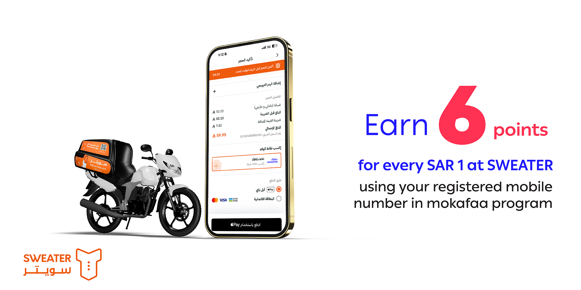 mokafaa now gives you 6 points for each 1 SAR spent at Sweater App using the mobile number registered with mokafaa!