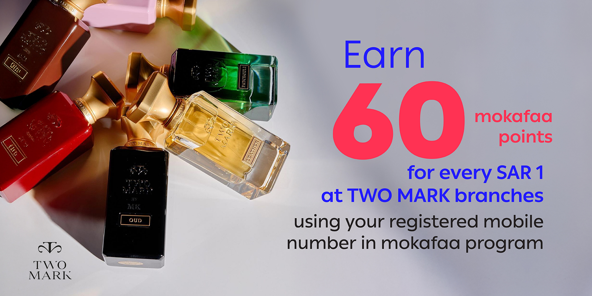 - Earn 60 mokafaa points for each 1 SAR Spent at Two Mark Branches using your mobile number.