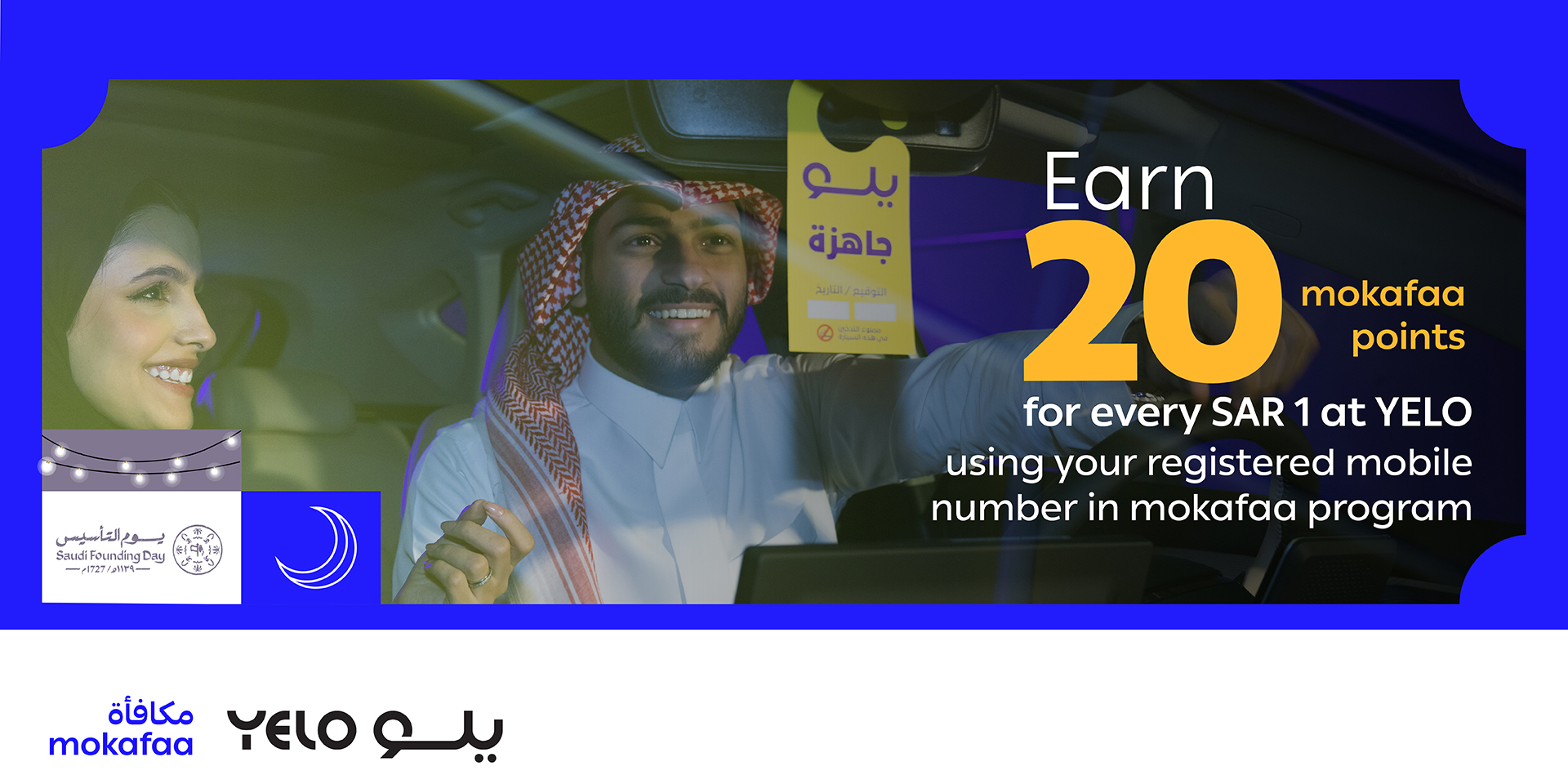 - Earn 20 mokafaa points for each 1 Spent at YELO Car rental branches.